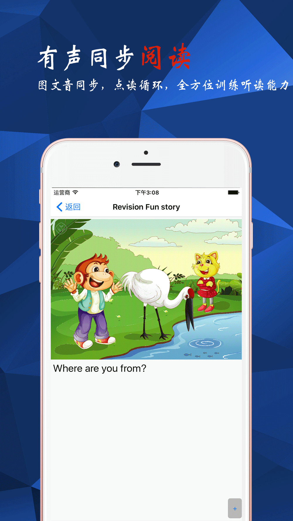 课文:全新展现课本内容,图片和文字语音同步,支持多种模式播放点读,同步教材编排,从此不用点读机;