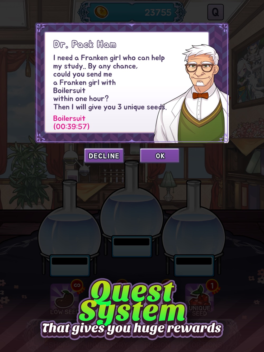 - Laboratory upgrade system that enables player to create high quality franken girls