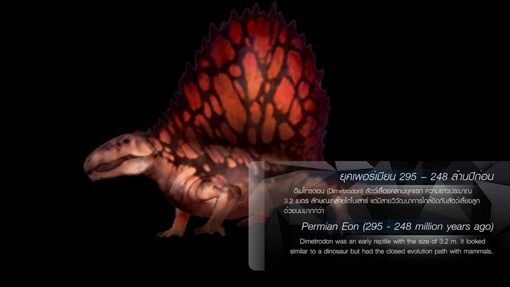 ร่วมค้นหาและสำรวจสิ่งมีชีวิตดึกดำบรรพ์ในอดีต ตั้งแต่สิ่งมีชีวิตเซลล์เดียวในยุคอาร์เคียน วิวัฒนาอย่างต่อเนื่องในแต่ละยุคจากสิ่งมีชีวิตเซลล์เดียว สิ่งมีชีวิตไม่มีกระดูกสันหลัง สิ่งมีชีวิตมีกระดูกสันหลัง ค่อยๆ วิวัฒนาการและปรับเปลี่ยนรูปแบบการดำรงชีวิต สู่สิ่งมีชีวิตมีกระดูกสันหลัง กลุ่มสัตว์เลี้ยงลูกด้วยนม ยืนสองขา ซึ่งได้แก่สายพันธุ์บรรพบุรุษของมนุษย์ในปัจจุบัน เพียงสแกน AR* ลงบนผนังบอร์ดลวดลายสิ่งมีชีวิตดึกดำบรรพ์ เพื่อให้ภาพสิ่งมีชีวิตในยุคดึกดำบรรพ์แต่ละชนิดปรากฏขึ้น และถ่ายรูปเก็บไว้ได้อีกด้วย