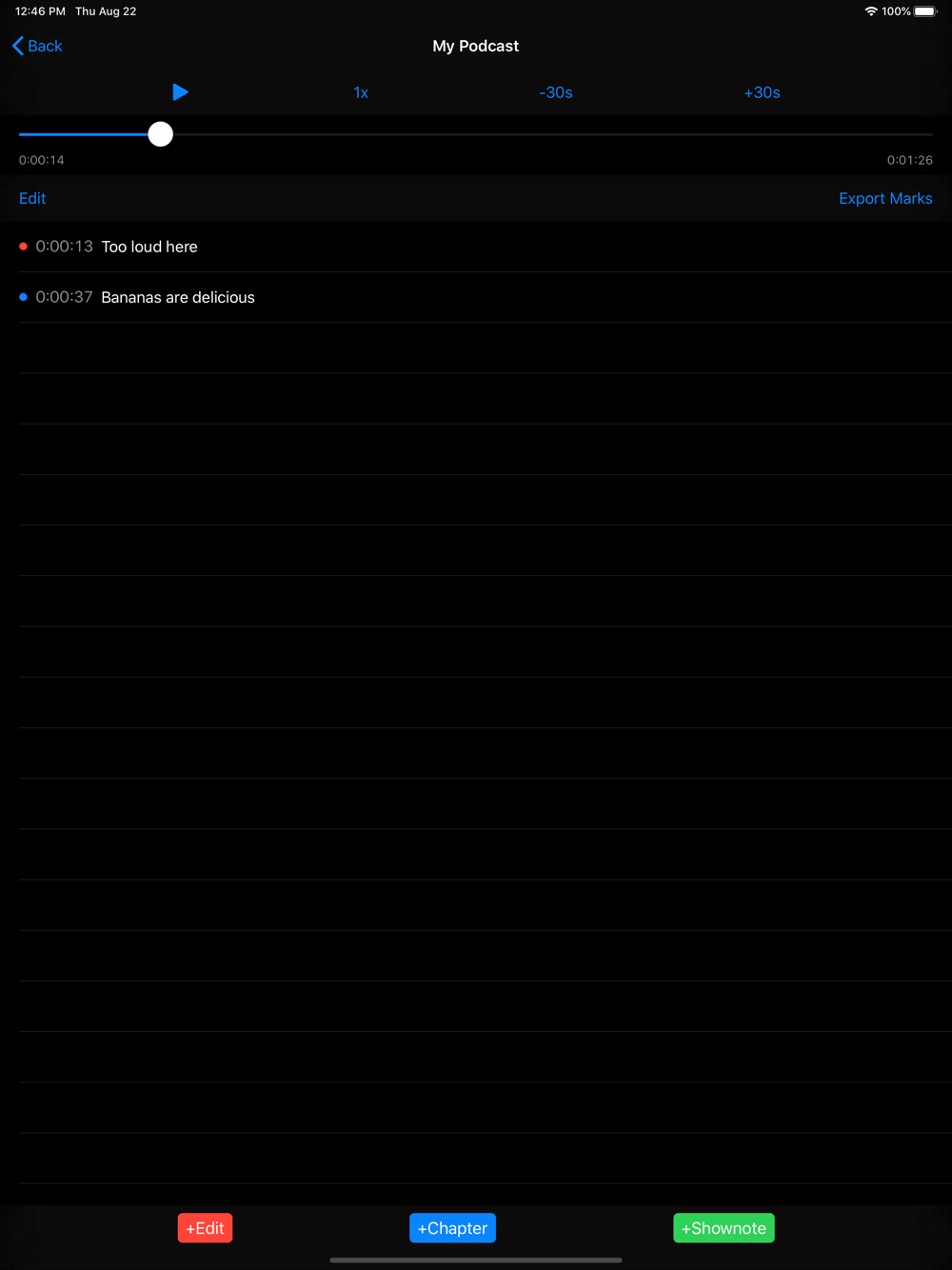 Chaptr is also available on your Apple Watch! Create marks from your wrist while you listen to your audio productions!