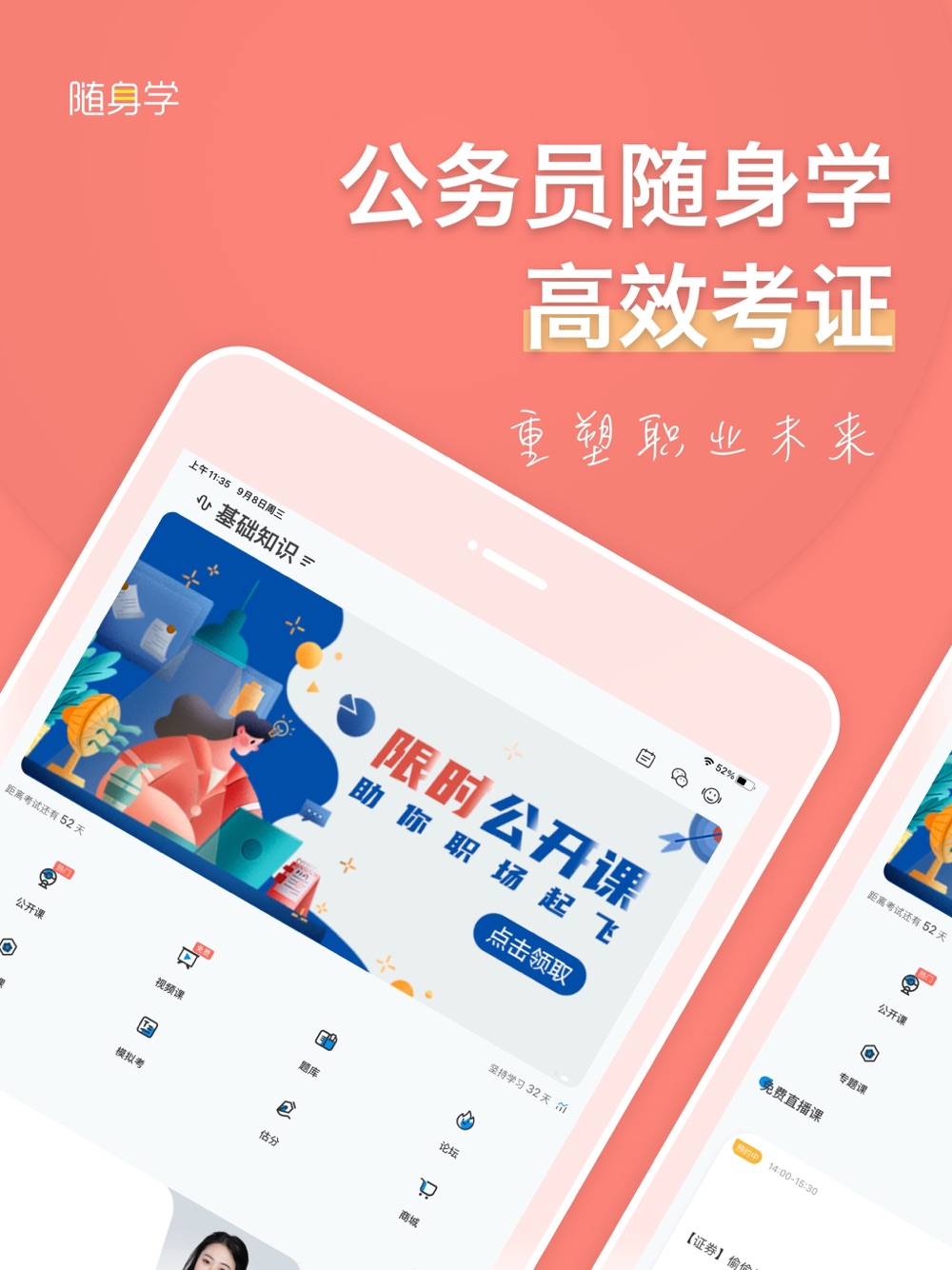 同步2021公务员考试大纲,按章节系统学习,直播课程视频,支持离线下载,清晰度选择,别人每天赶着去上课,我们在家里用手机学习。