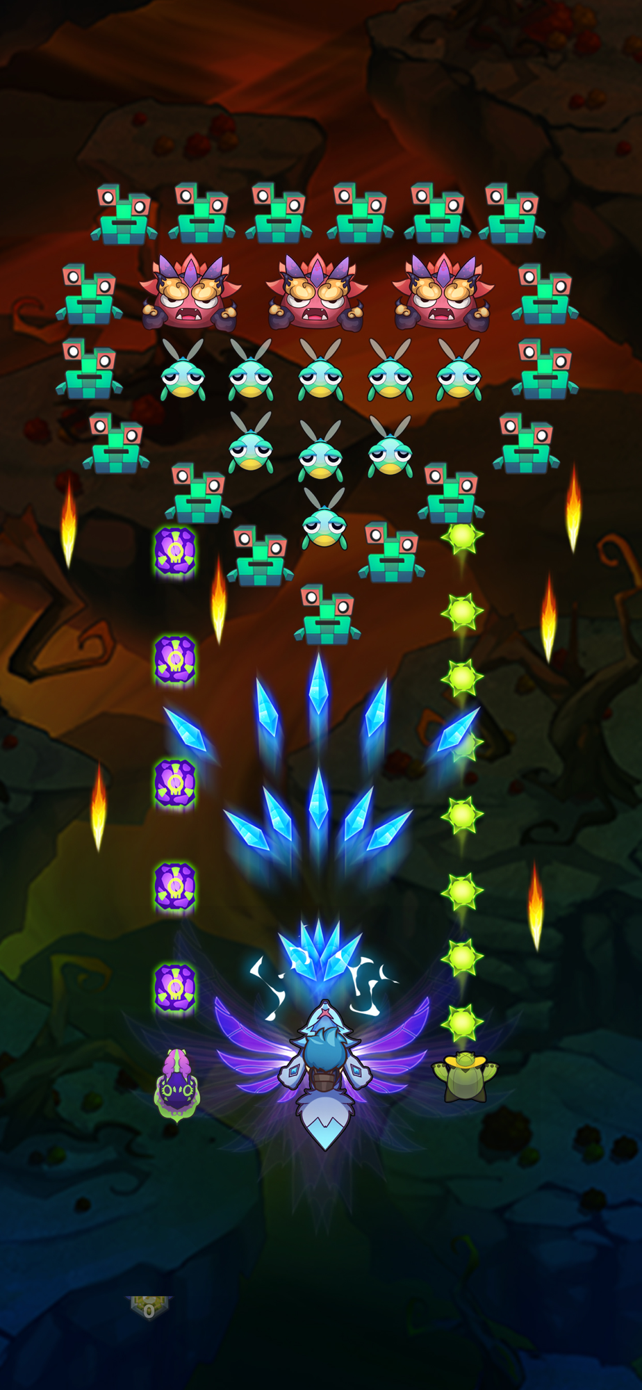 The gameplay is easy but hard to master: hold and drag the spaceship to shoot all the aliens and evil monsters. Your spaceship/ spacecraft/ starship is in form of cute monsters called Okimon.
