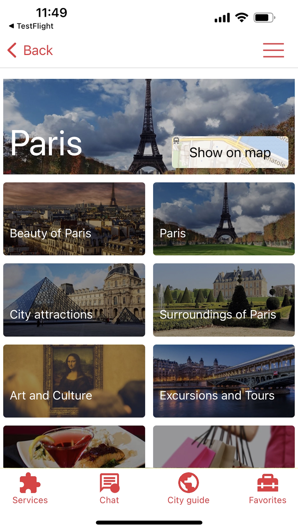Bordeaux, Carcassonne, Lyon, Marseille, Mont-Saint-Michel, Nantes, Nice, Paris, Strasbourg