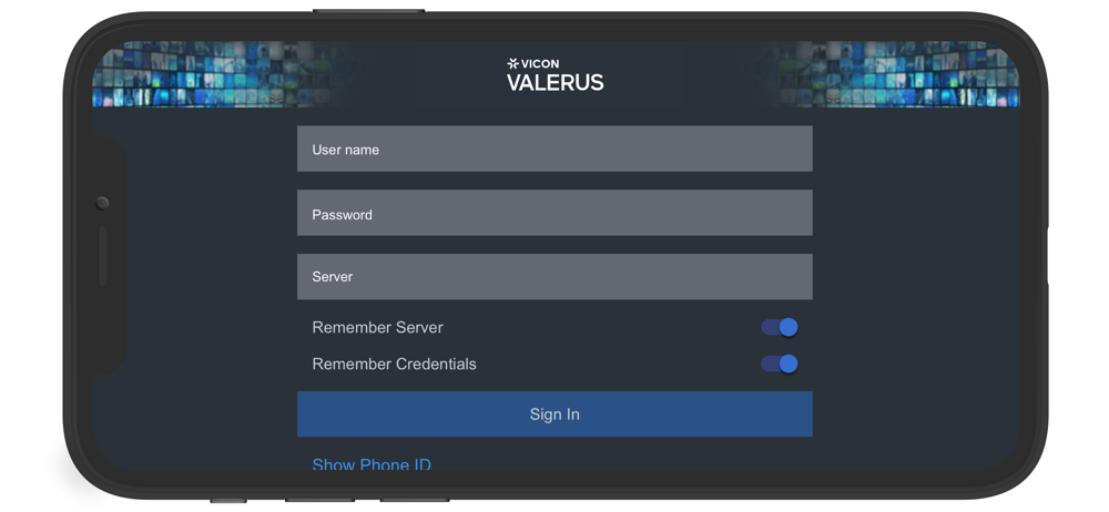 Designed to support security systems running Vicon Valerus Video Management Software (VMS), Vicon Valerus Mobile provides the freedom to securely monitor your site from anywhere using a mobile device. Vicon Valerus Mobile supports many functions of full-featured Vicon Valerus systems, including: