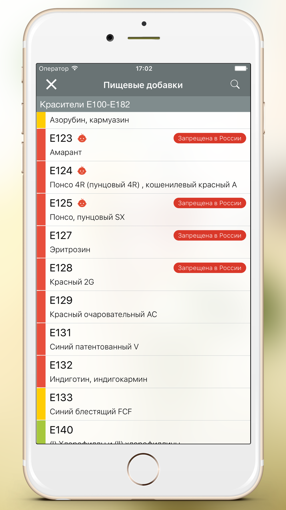 - Пищевые добавки (Доступна информация о запрете для детей и животных)
