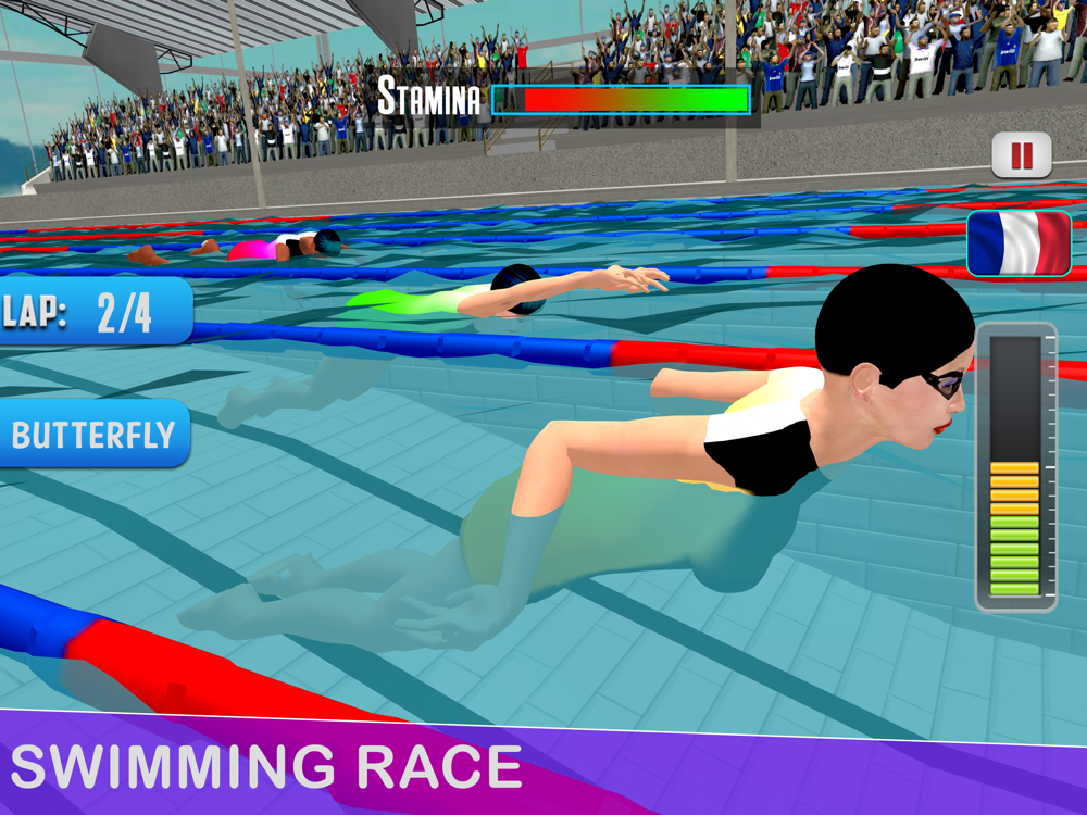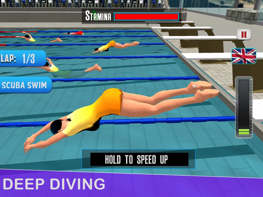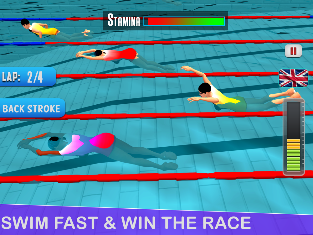 Dive into the beautiful swimming pool, practice in free style and compete with professional swimmers in this swim racing games. Keep Diving into the water pool and keep flipping or taping to attain faster speeds. Free Style swimming is best but you can try other professional swimming styles like backstroke, breaststroke,butterfly store, sidestroke all. Practice these stores, chose your favorite swimming team and beat other swimming racing while flipping all through the water.