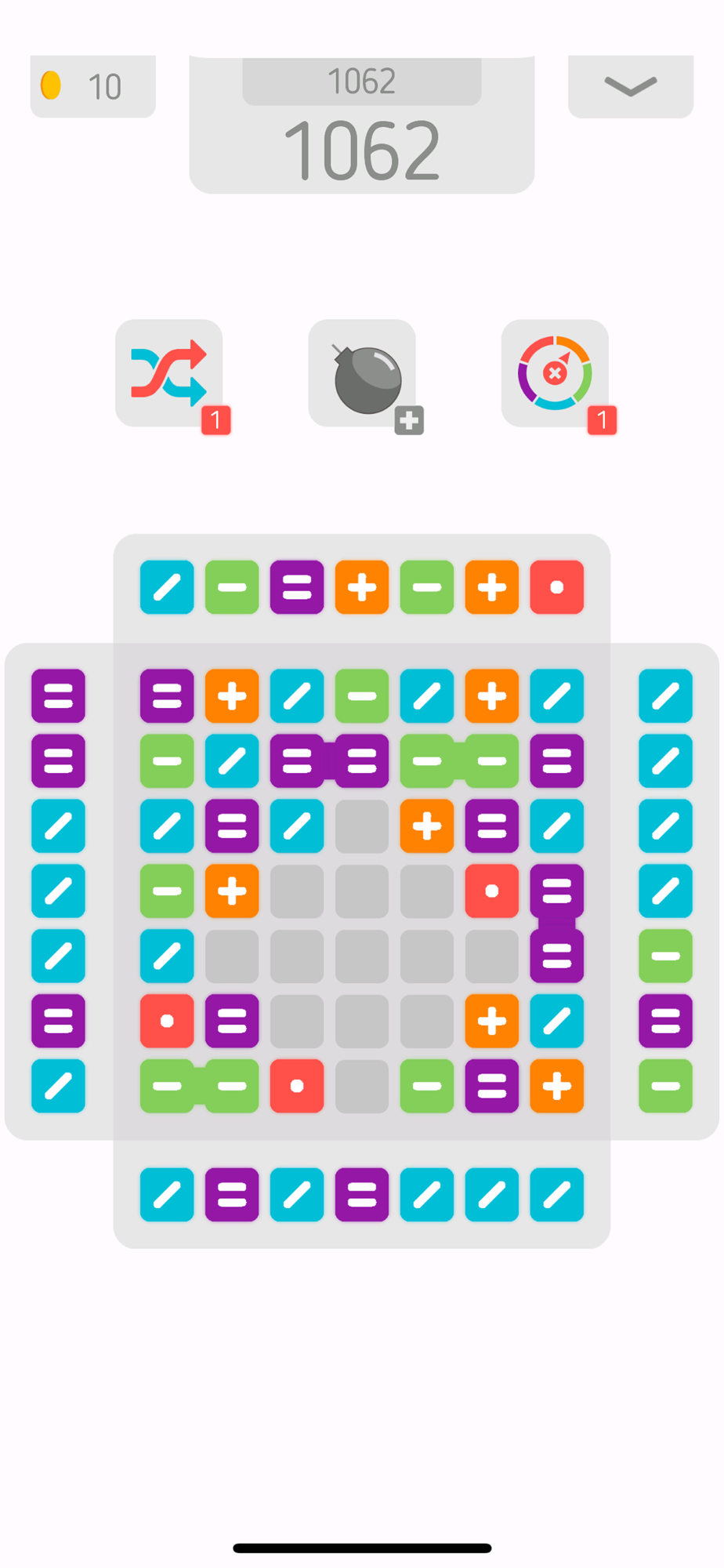 Swipe to move the side tiles and gather at least 3 tiles of the same color to clear them. For combos you will earn coins and get more score points. Buy bonuses for coins an use them to avoid loose. You loose if the board is empty. If the board is full you can use bonuses to get some space for futher moves. Use shuffle bonus to shuffle all tiles on the board. Use bomb bonus to destroy tiles at plase you want. Use clear color bonus to clear all tiles of some random color.