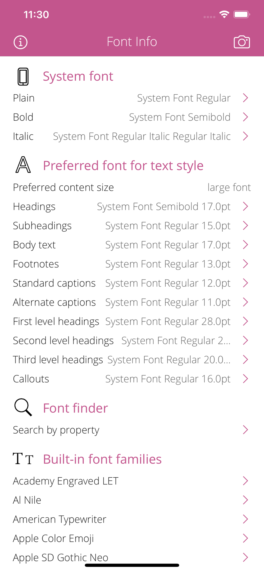 • Detect the fonts and sizes associated with the text style (headings, body, footnotes, captions, etc) and scaled appropriately for the user's selected content size category.