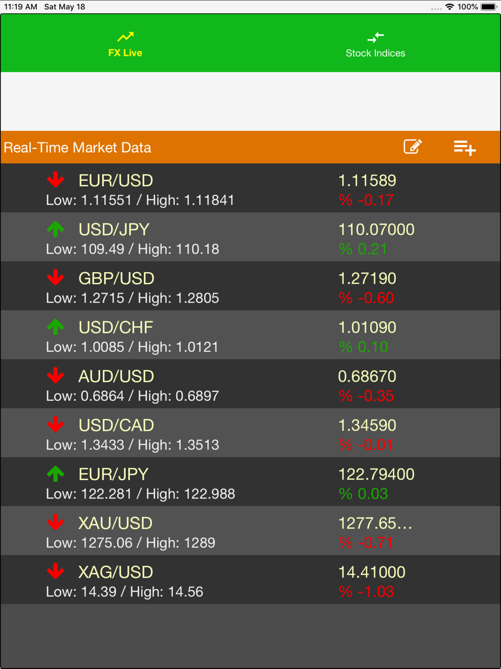 LiveFX provides you live data of fx rates and world stock indexes. You can choose indexes or fx rates you are interested in for your personal page and only follow them only. Data is live and updated every 30 seconds. Follow the markets online and don't miss opportunities !