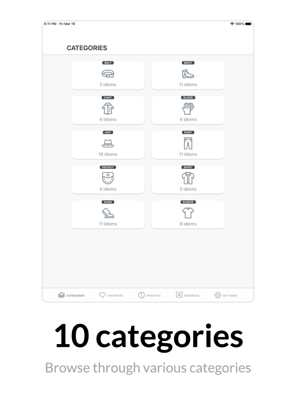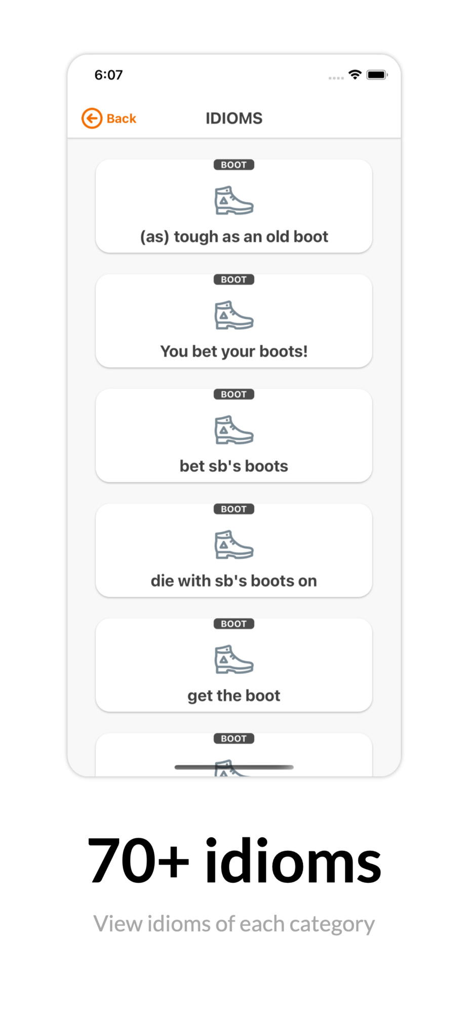 - Add an idiom into your favorite list and manage all your favorite idioms.