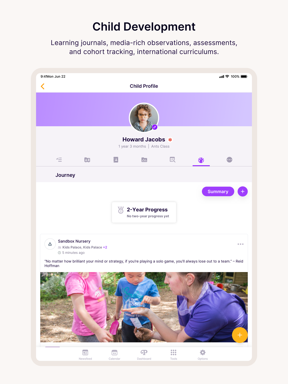 Help children grow and develop with learning journals, media-rich observations, assessments and cohort tracking.