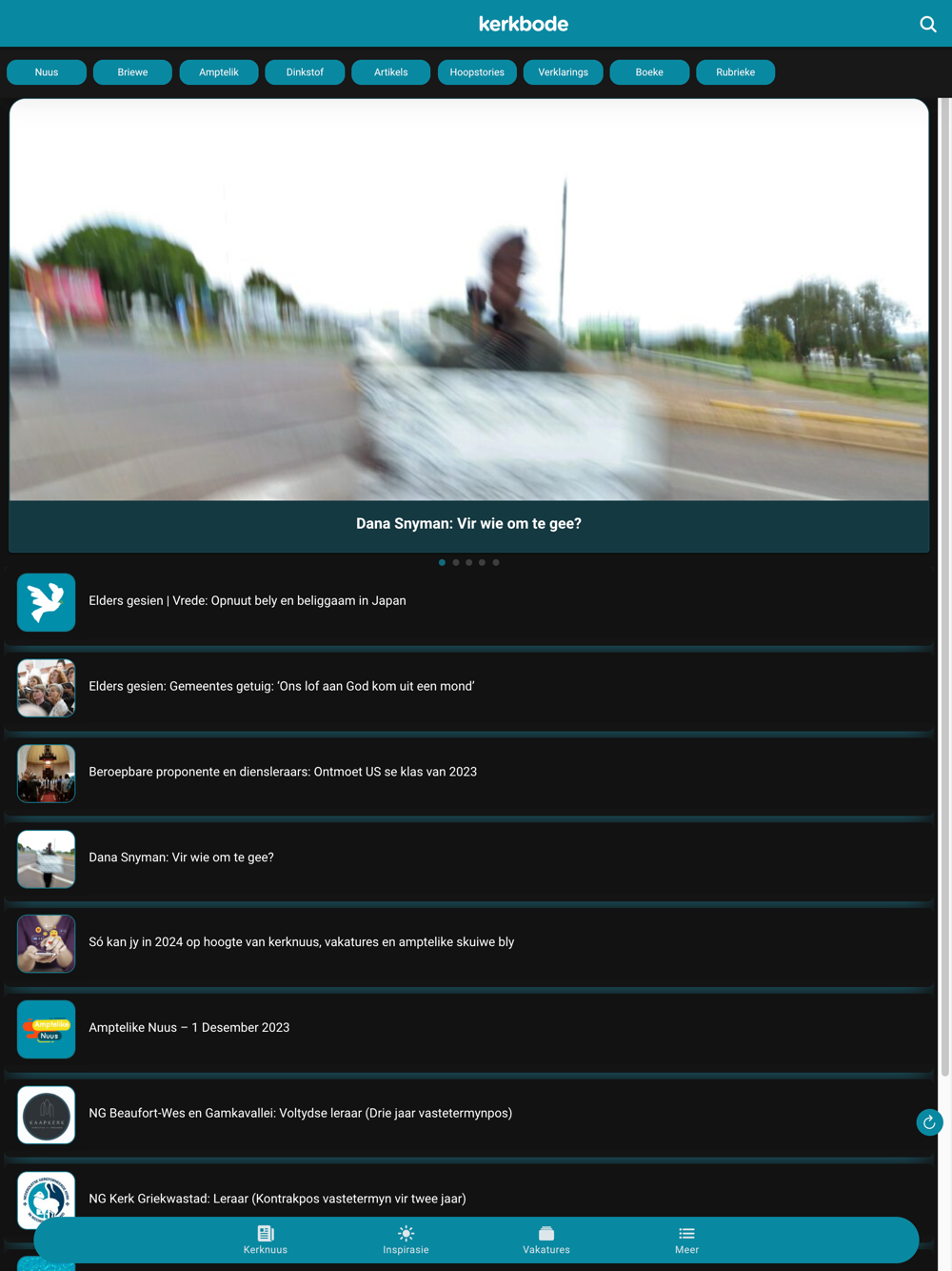 Kerkbode is the official newspaper of the Dutch Reformed Church in South Africa - since 1849. This is a newspaper for modern people who are interested in the operations of the church. Kerkbode promotes open discussion, tells stories of hope, and serves members with testimonies, spiritual content and official news from within the Dutch Reformed Church.