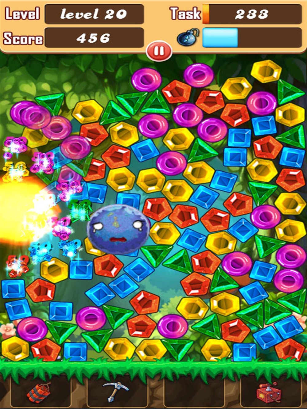 Inherited the classic three elimination games are played, the game play point to break through the barrier in the form of production, the use of new technology to produce cool particle effects with stereo blasting music in the game.