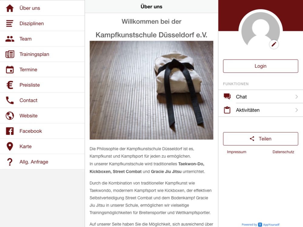 Auf unserer APP haben Sie die Möglichkeit, sich ausreichend über unsere Kampfkunstarten und Verein zu informieren.