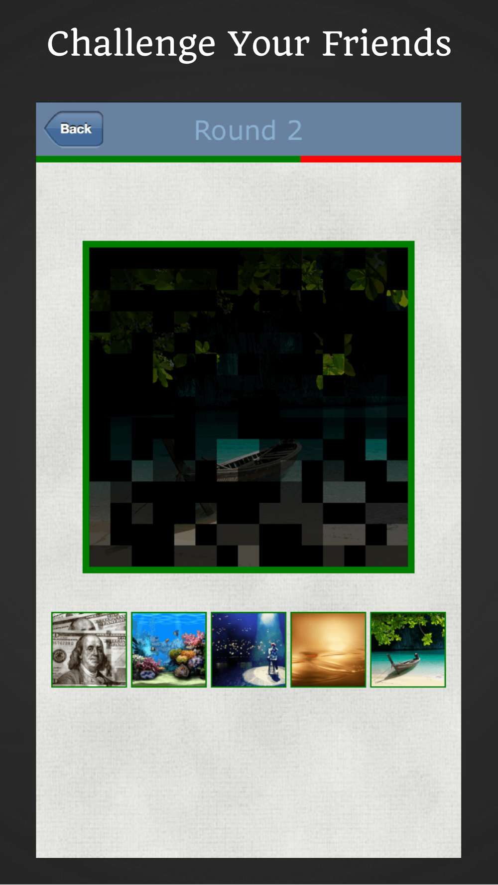 To challenge friends click on the Game Center app and then find Pixel Guess: Choose The Correct Picture in the available games.