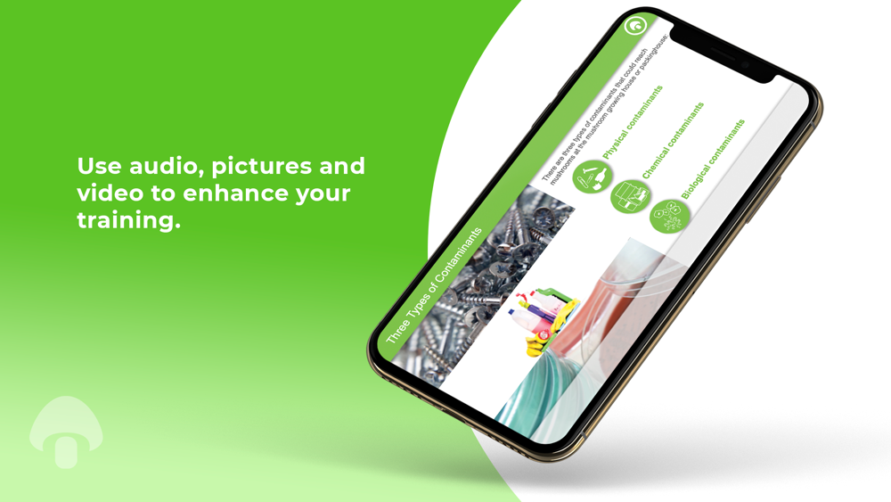 Training is an important part of a company’s food safety program. This training App is brought to you by the American Mushroom Institute (AMI) and focuses on the three types of contaminants that can represent a risk of contamination to mushrooms. Mushroom industry employees will learn how physical, chemical and biological contaminants can contaminate mushrooms, and what practices employees need to follow to help prevent and control these hazards.