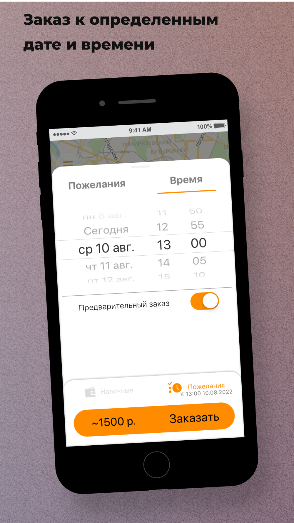 Закажите водителя сразу или оформите предварительный заказ в приложении и водитель прибудет к определенному времени.