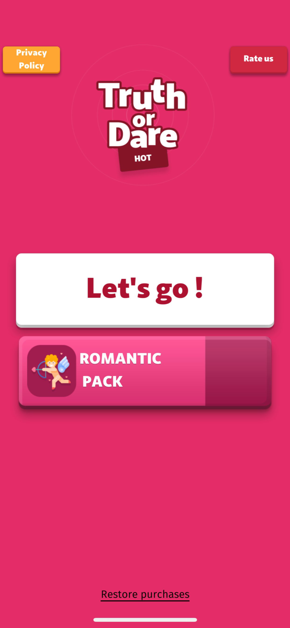 Get hold of the new Romantic category. If you think that the regular questions or dares are too racy for you, try the softer romantic version and spend the best evening together with your better half.