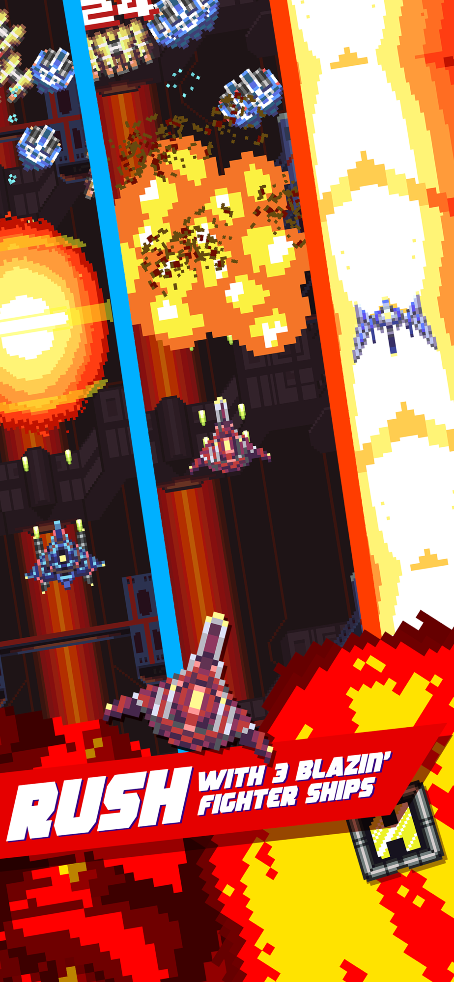 • Three distinct fighter ships and bomb types