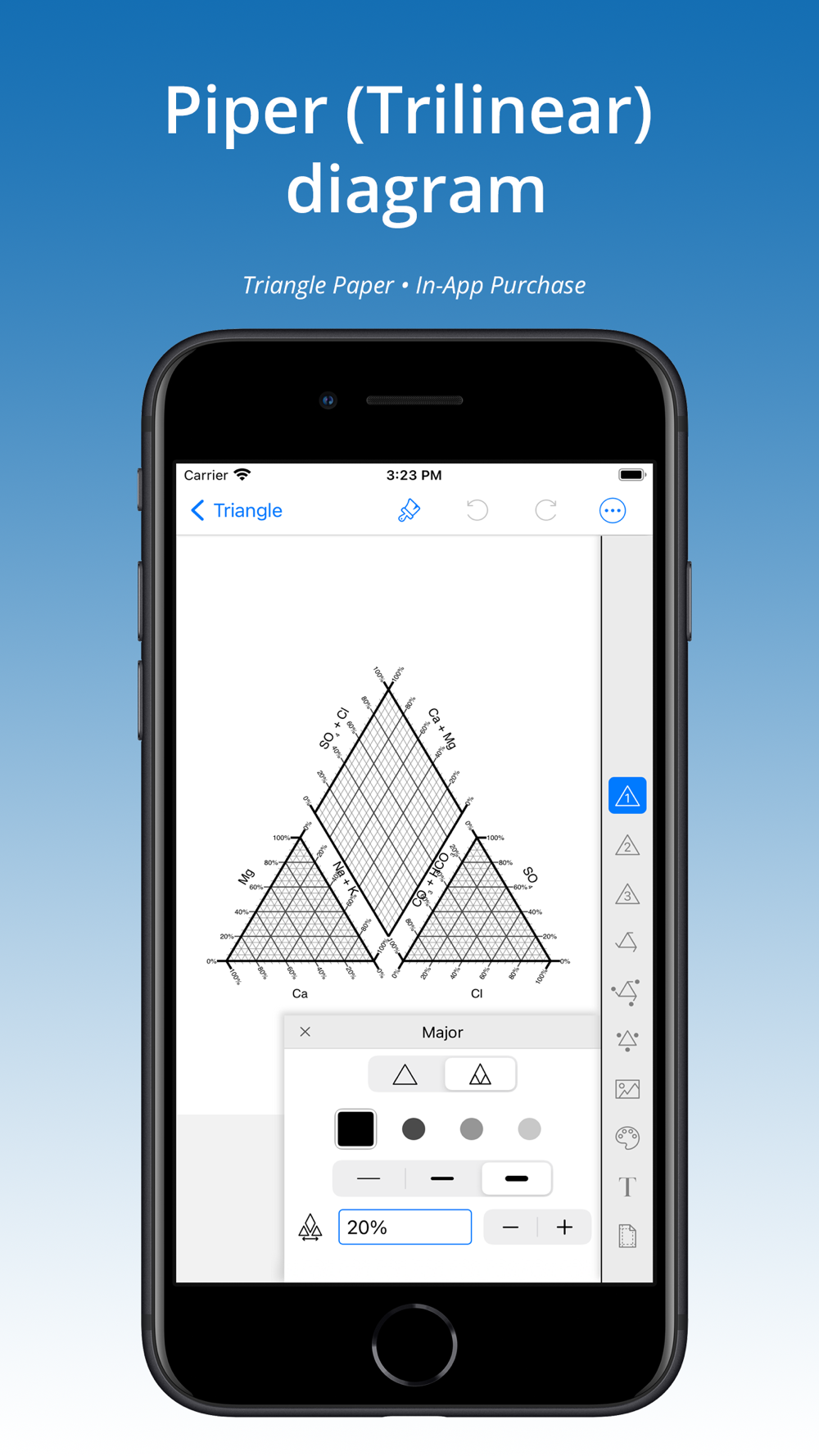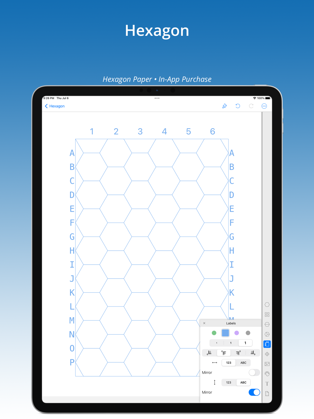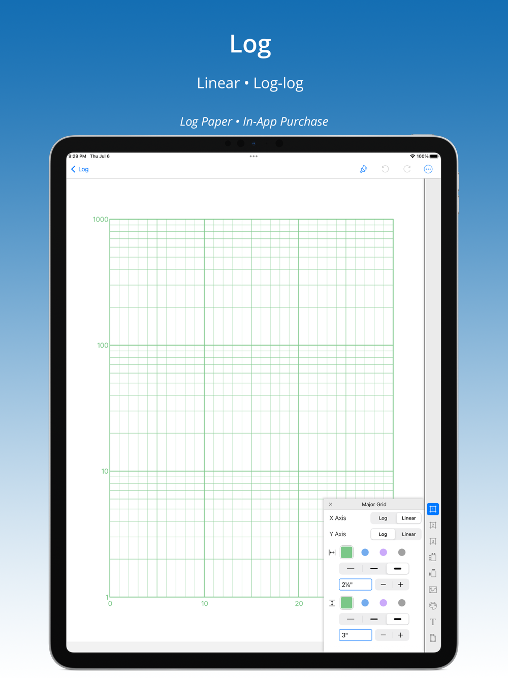 Create and print accurate grids in inches or metric. Add specialty papers — hexagon, brick, polar, log, ternary-triangle, spider, and sheet music — with InApp purchase at the same cost as the app. No ads or tracking.