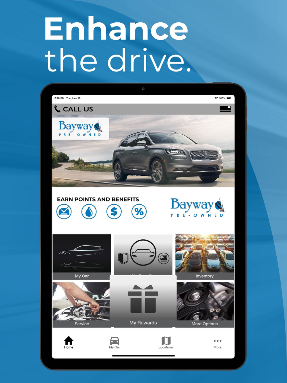 The Bayway Lincoln Mobile App is designed for customers of our Rewards program. The dealership has locations in Houston TX. This app allows you to view and track your participation in the dealership's Rewards program and to view the service history of your vehicle. In addition, you are eligible for exclusive deals on service made available only to Mobile App Users!