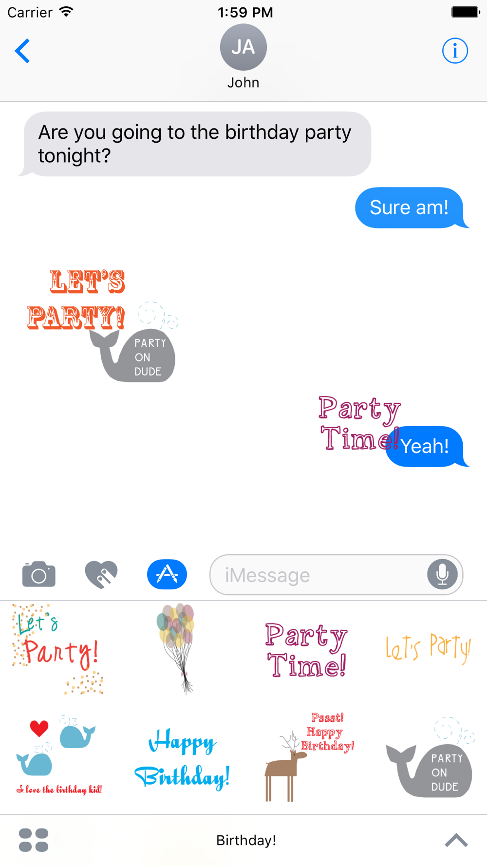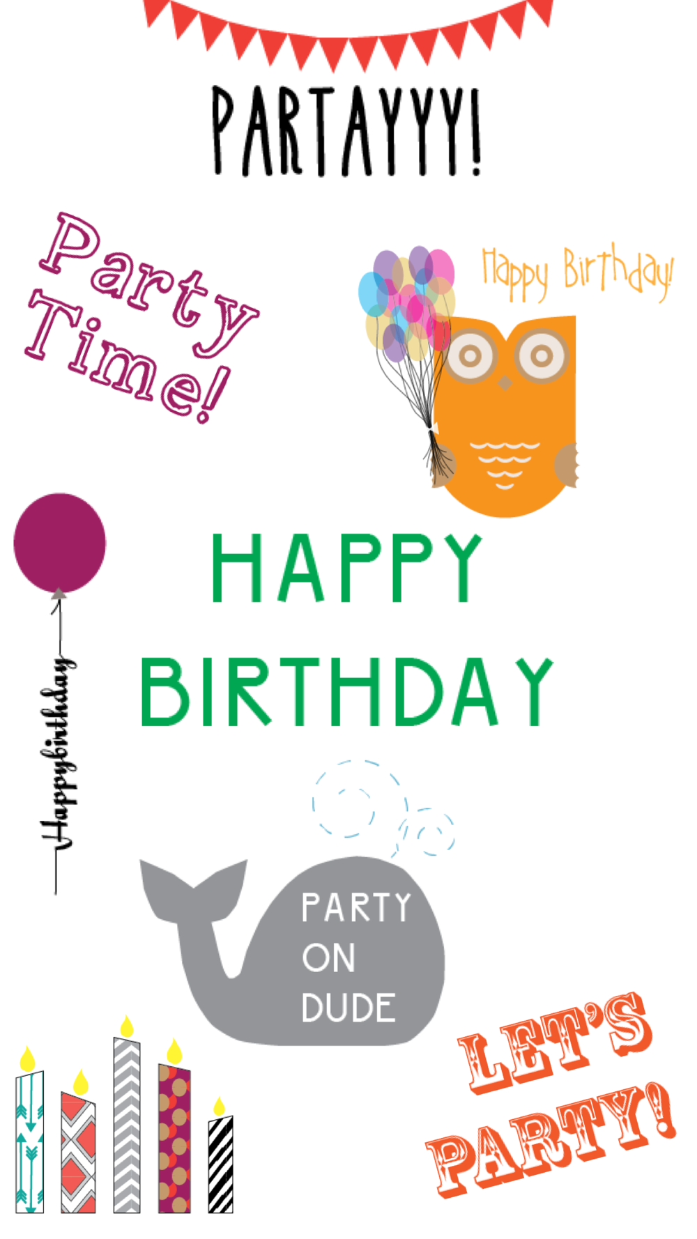 Happy Birthday! This sticker pack includes balloons, cakes, candles, messages, and more to help you wish your friends and family a happy birthday.