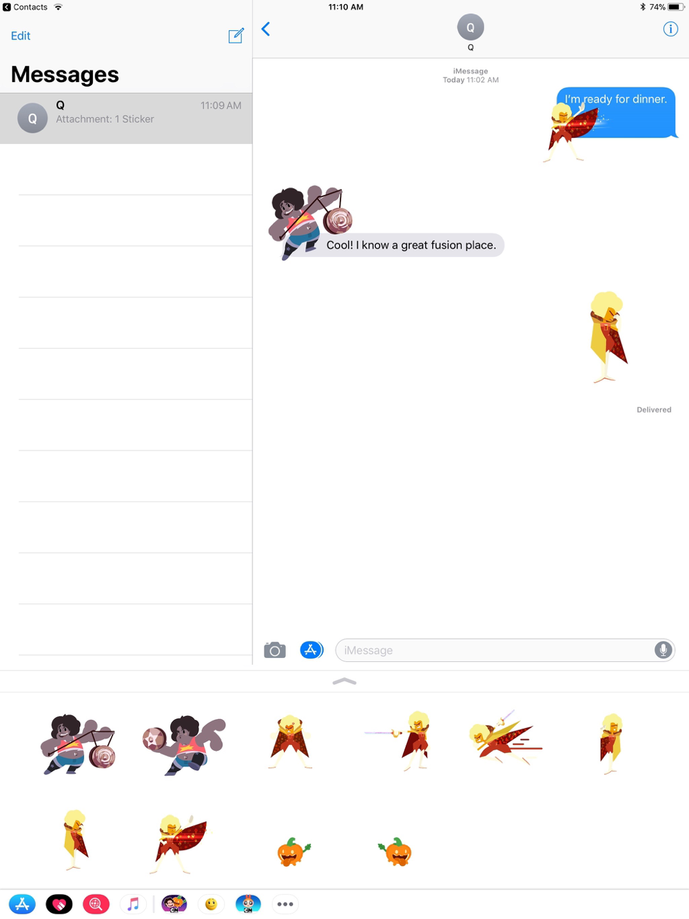 Show your friends that you’re strong in the real way! Now you can add Steven Universe stickers and quotes to your iMessages. This pack includes adorably awesome stickers of Steven, Connie, Greg, Garnet, Amethyst, Pearl, Peridot, Hessonite, Opal, Sardonyx, Smokey Quartz and Stevonnie!