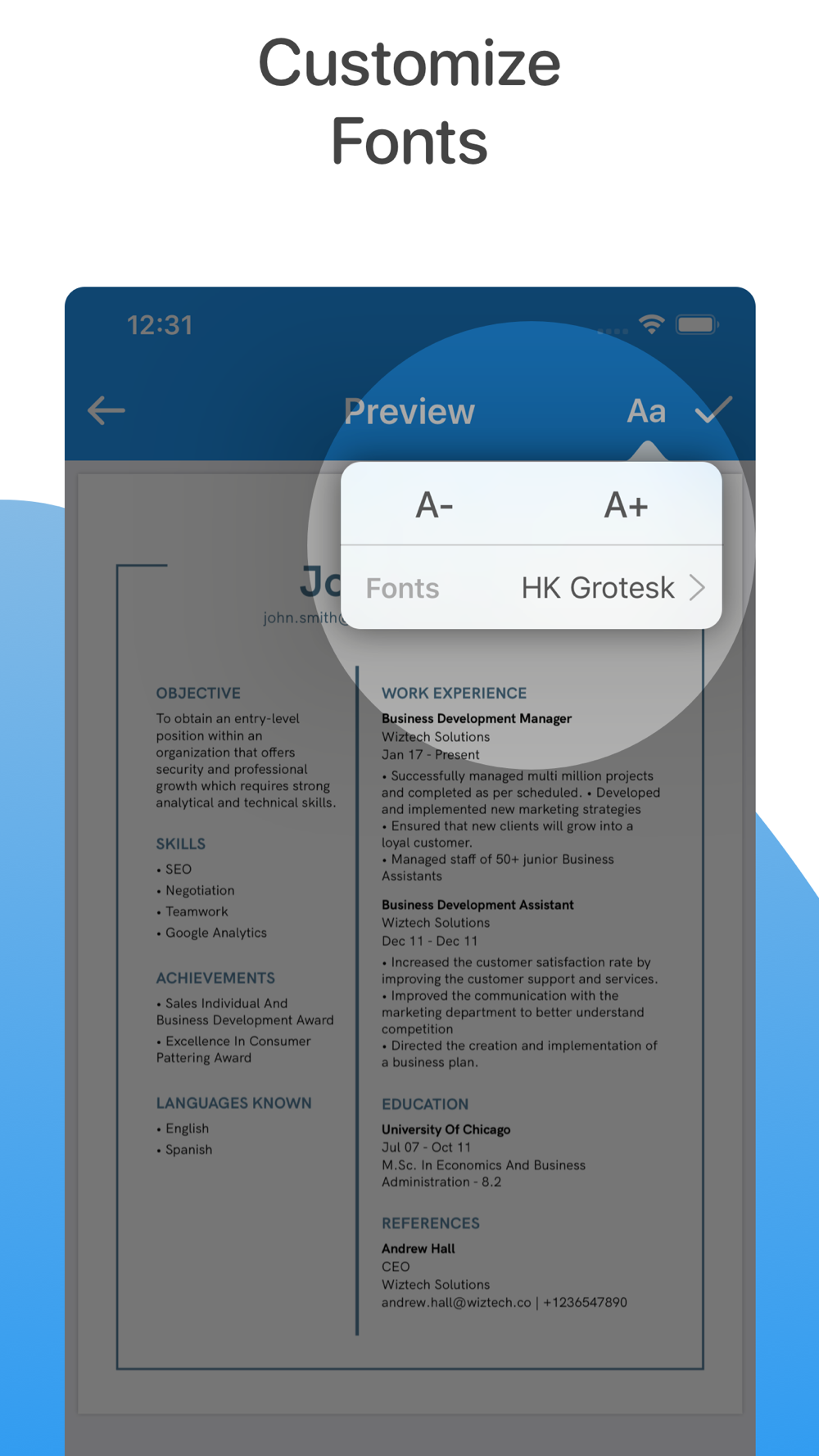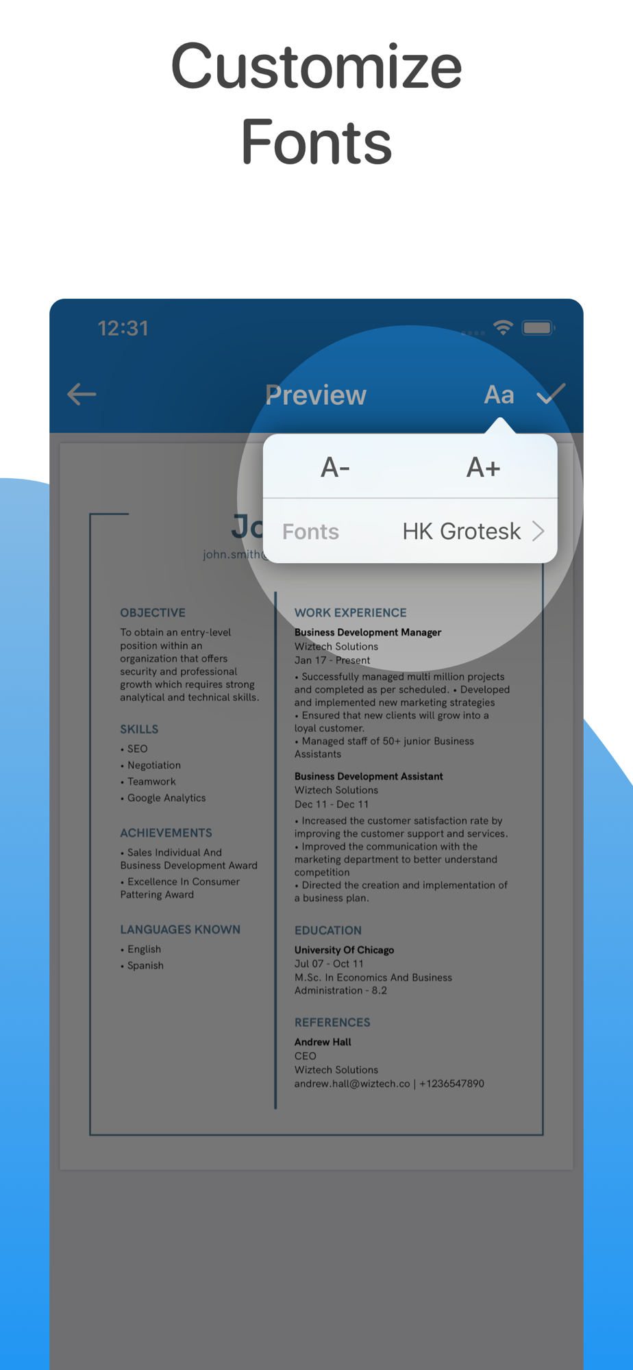 This Make My Resume - a resume / CV and cover letter builder app creates the best professional resume for you. Now you can instantly create a simple and professional resume for your interview on the go using this app.