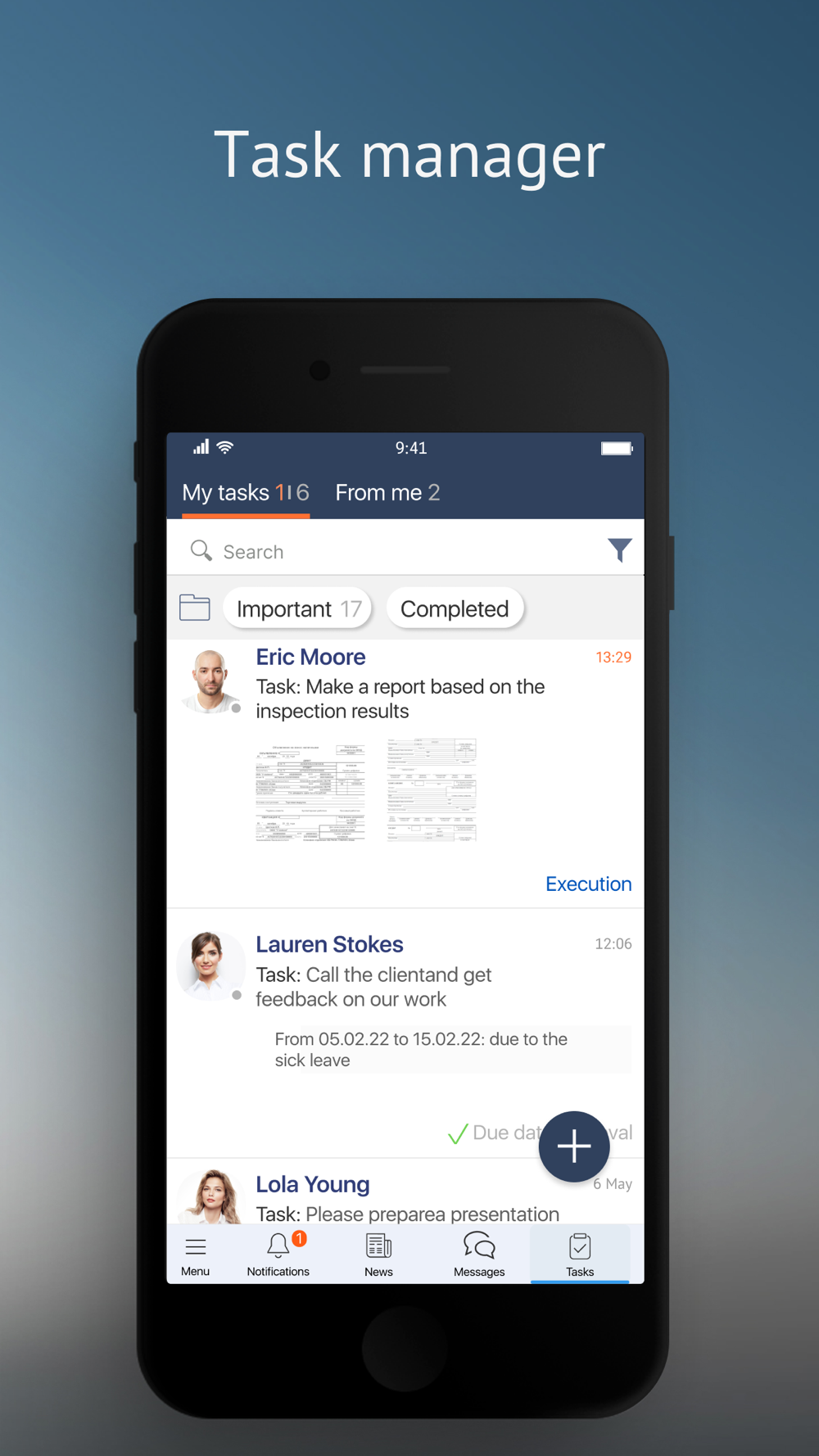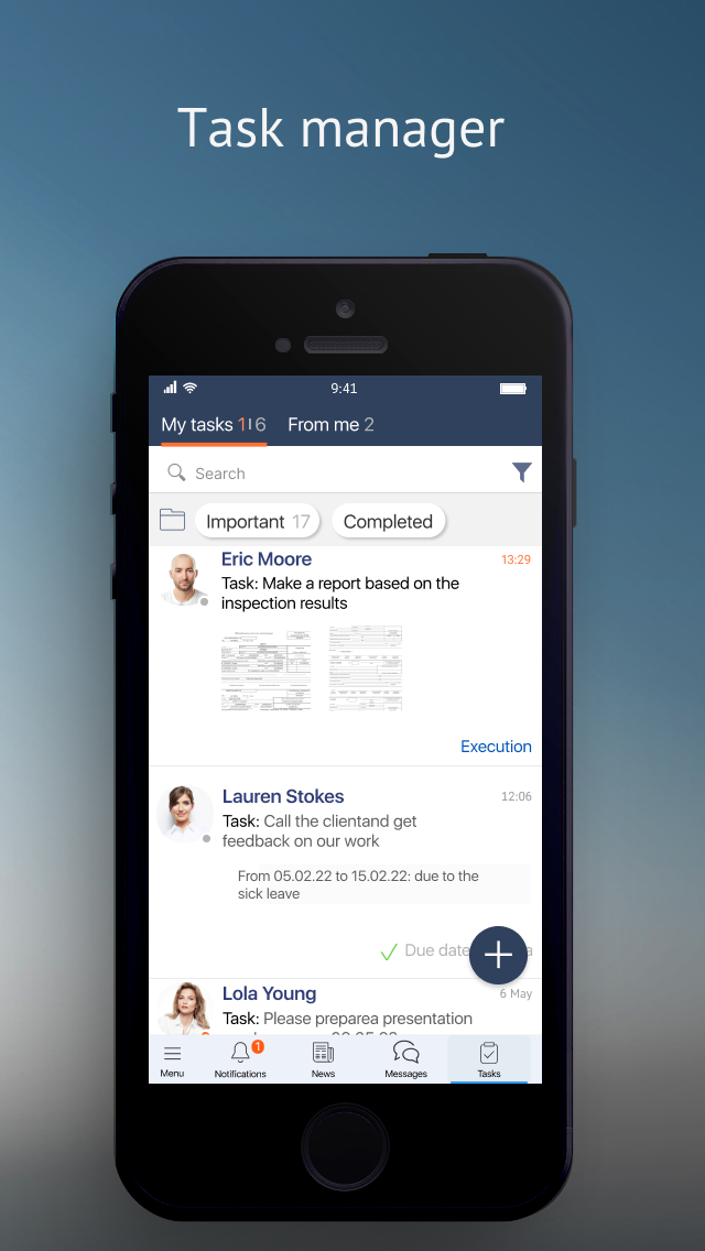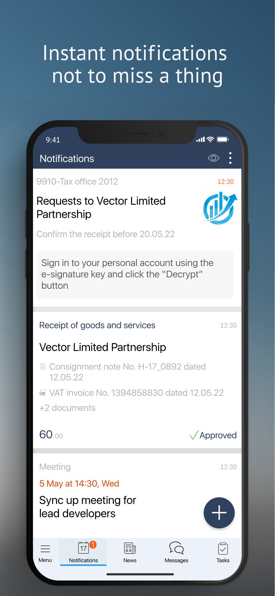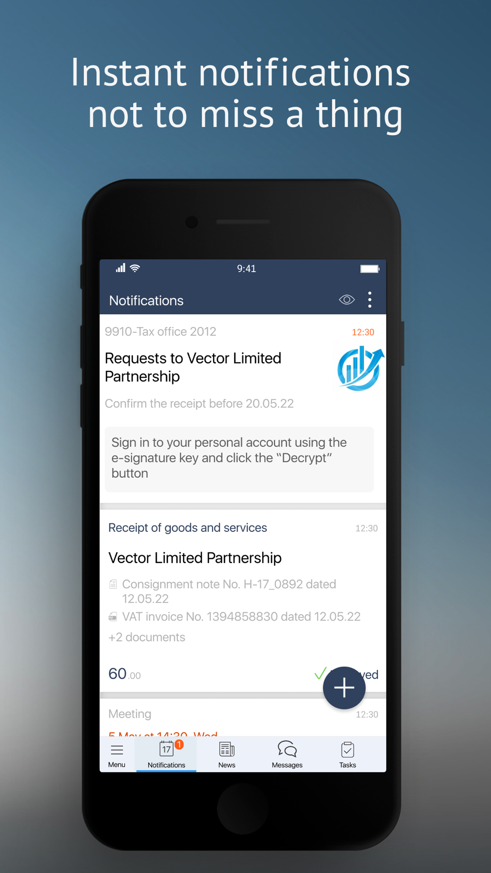 • Business Messenger – instant messages, exchange of documents and files, including those with electronic signature.