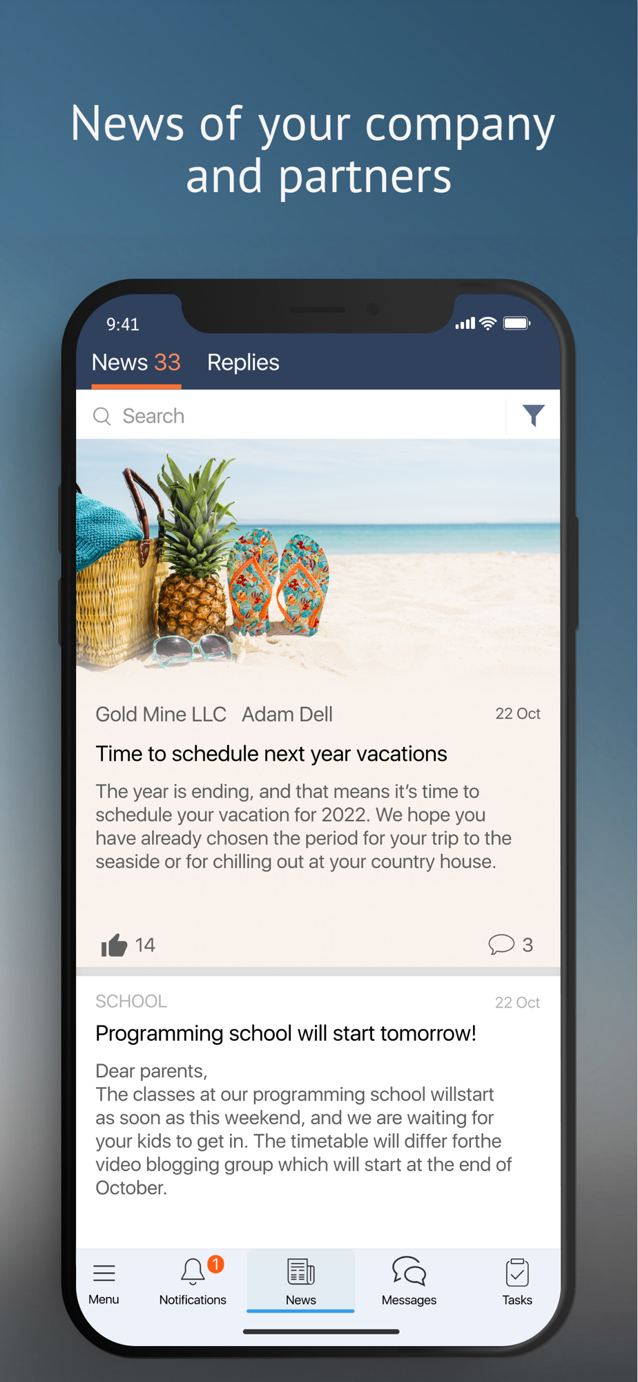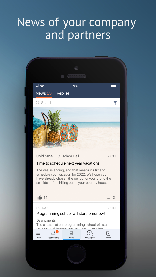 • News Feed – about your company changes, new orders, likes, reposts, comments.