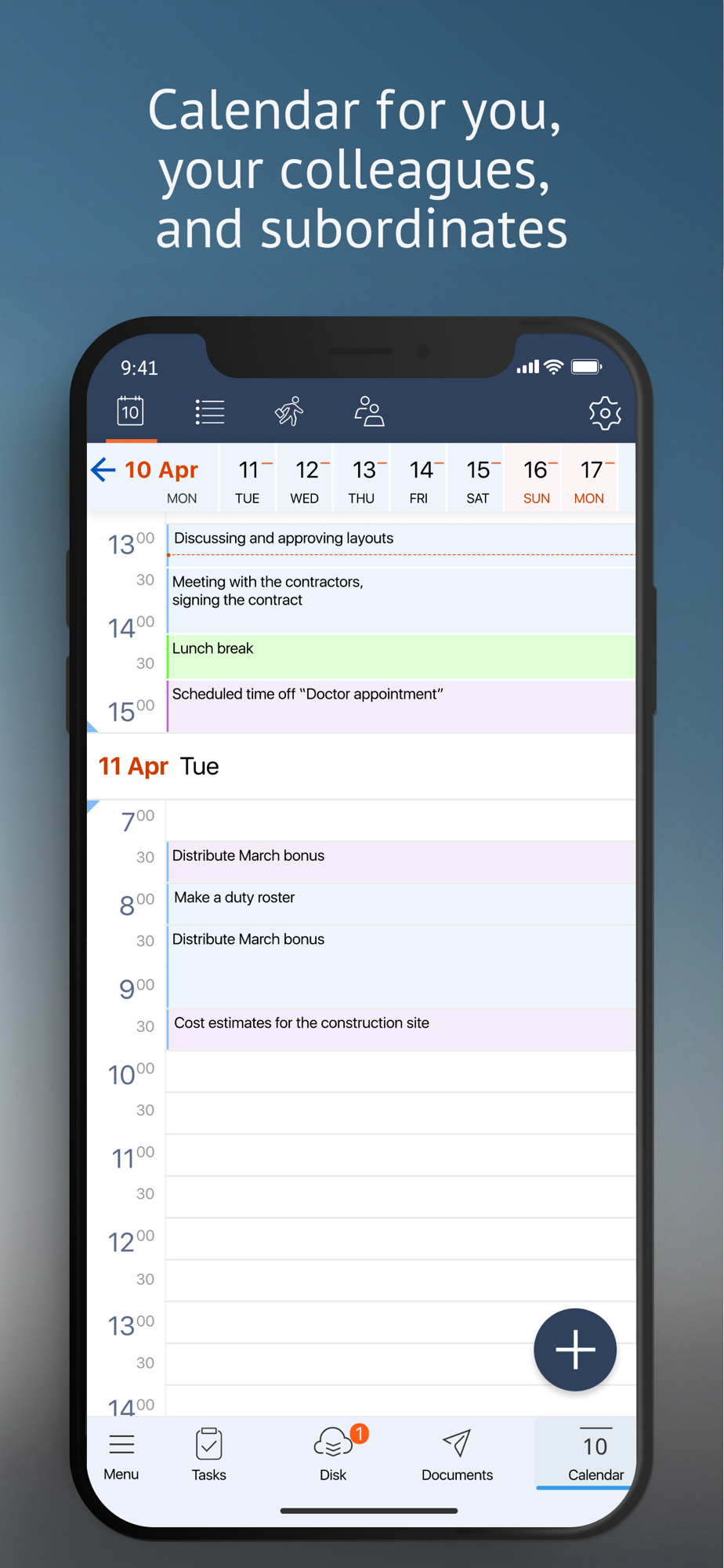 • Work Calendar – yours and your colleagues’, processing vacations, times off, sick leaves and business trips.
