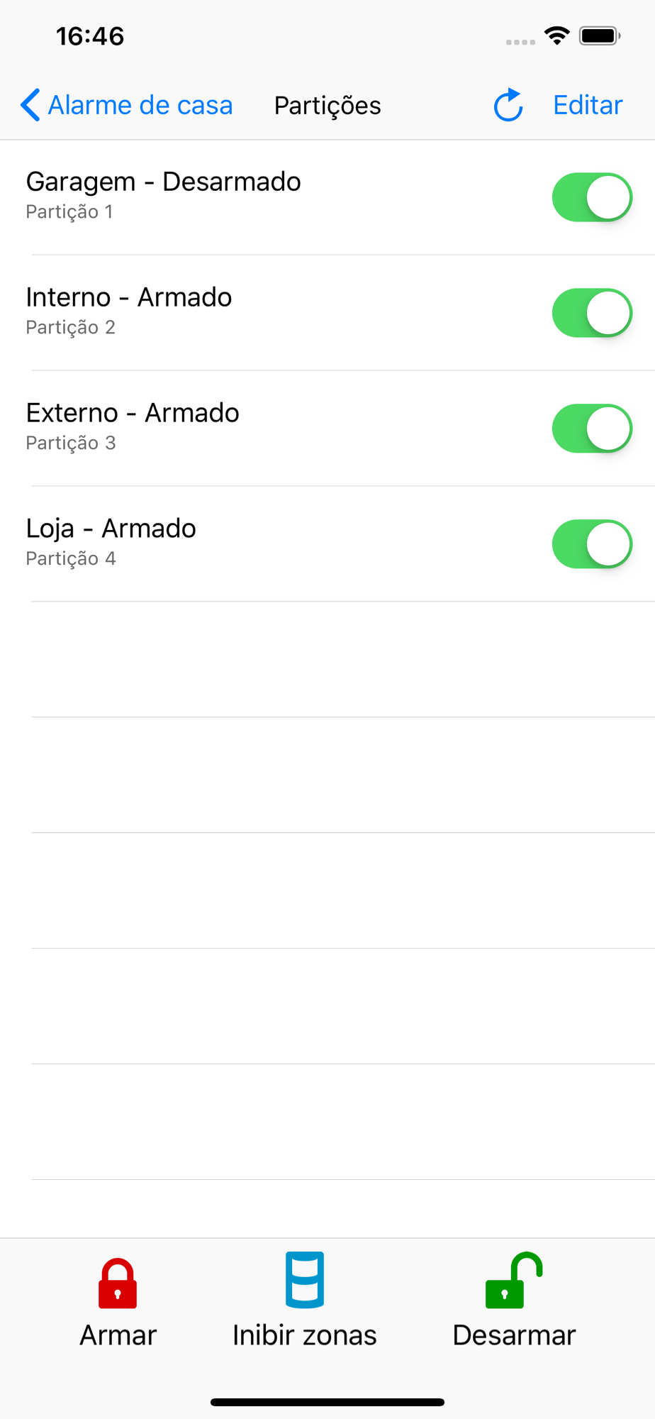 . Controlar diversos alarmes com um único aplicativo (residência,trabalho, casa de praia, etc.);