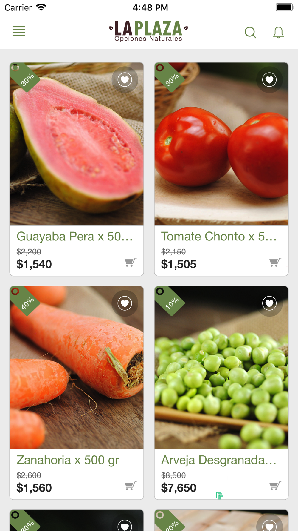 Encuentra en La Plaza - Opciones Naturales el mejor mercado de Bogotá a pocos taps de distancia. Adquiere los mejores y más frescos productos de frutas, verduras, carnes, hortalizas, huevos, pescados, mariscos, lácteos, orgánicos certificados y mucho más, de la manera más fácil y rápida.