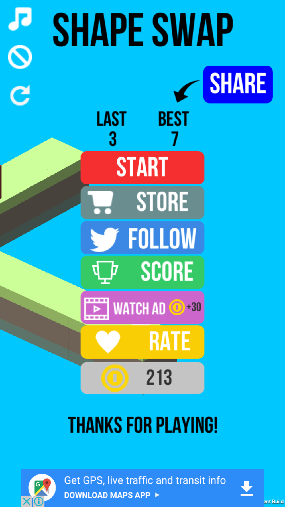 The endless runner game is designed with thrilling sound effects and challenging obstacles throughout the game. The game becomes more challenging and the speed increases as you cover more distance. Collect coins during the gameplay and use the coins to unlock the new and exciting different colored skins and trails for your character. "Shape Swap" is a perfect endless classic game for players of all age groups from kids to teens to adults. Play the endless runner game anytime and anywhere to enjoy the unlimited fun.