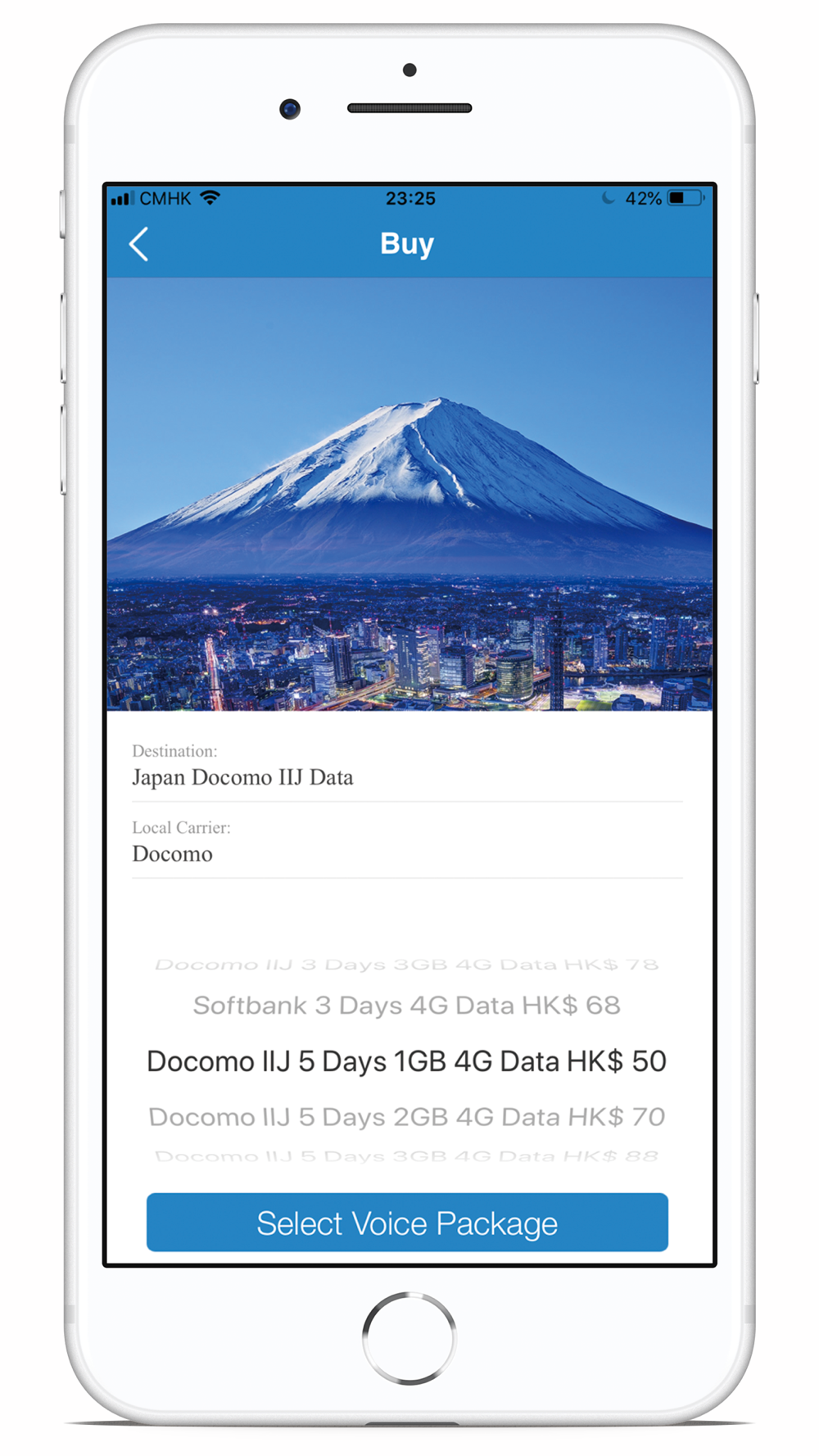 2.  Simply select your destination, trip period and desired data usage in AIRSIM ROAM App before your every trip, you can enjoy the data service immediately upon arrival.  All AIRSIM data packages can be activated instantly upon purchase.
