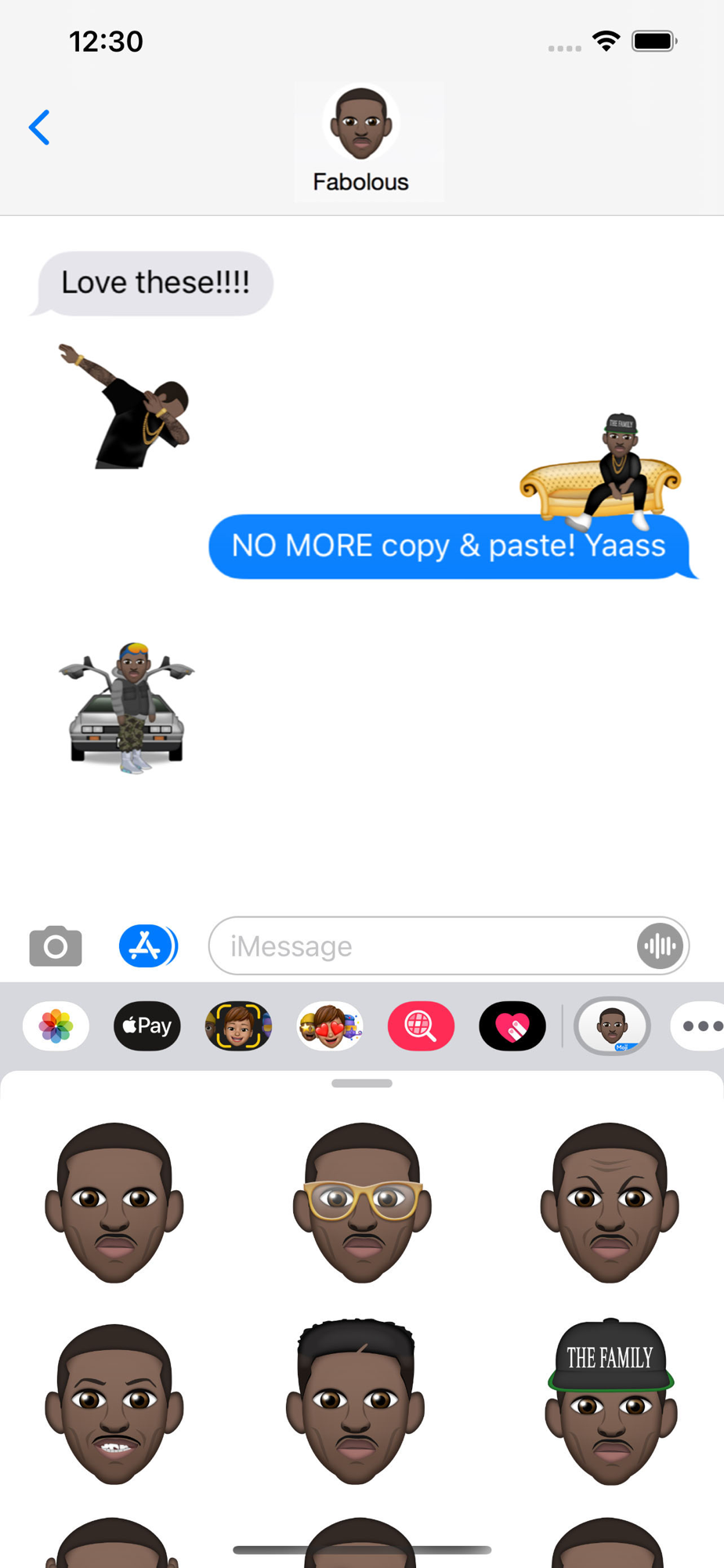 Bring your conversations to life with over 55 of personally curated icons from Fabolous by Moji Stickers.