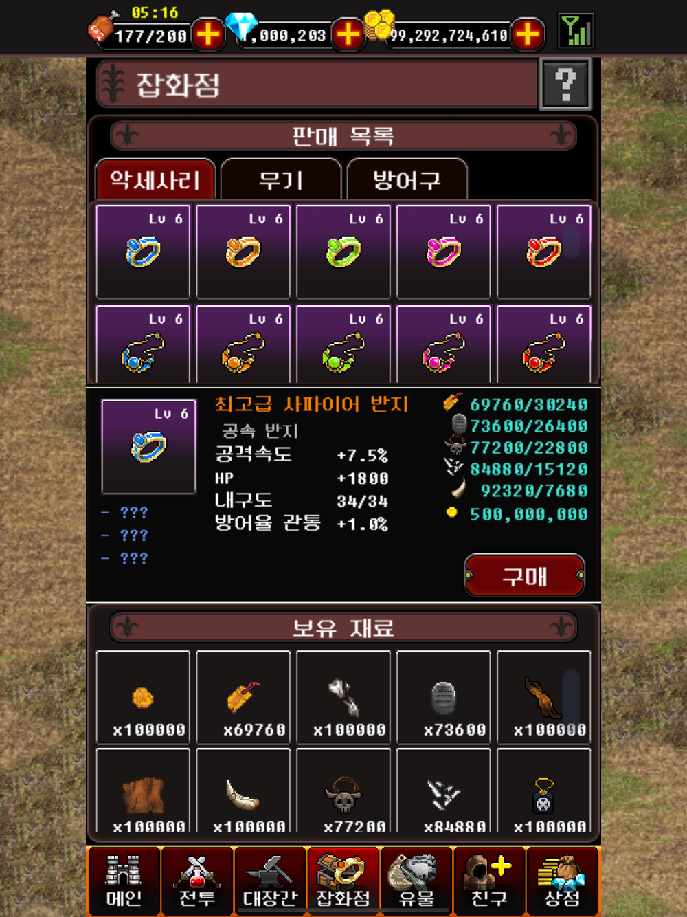 - Mace: Attack / Critical probability are very high but the Attack Speed / Accuracy are