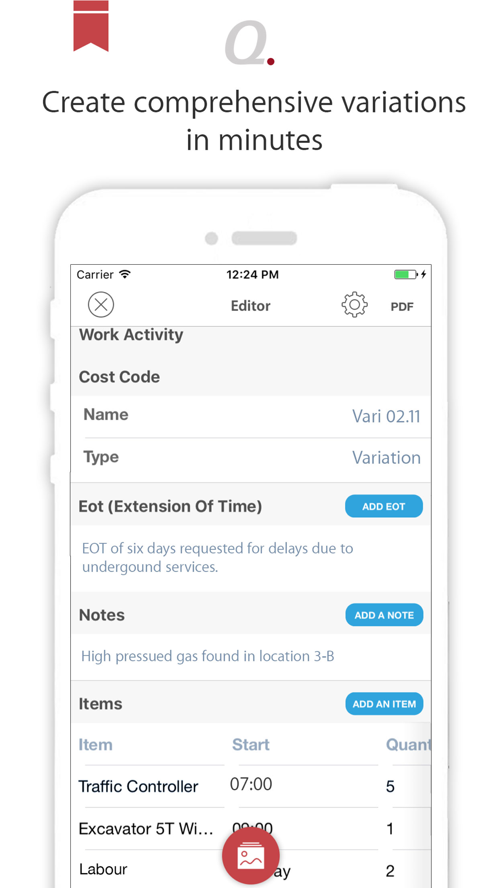 Quiick Variation is an app solution to create professionally formatted variations in PDF format with minimal effort and time. Input critical variation details with our simple and easy-to-use tool.