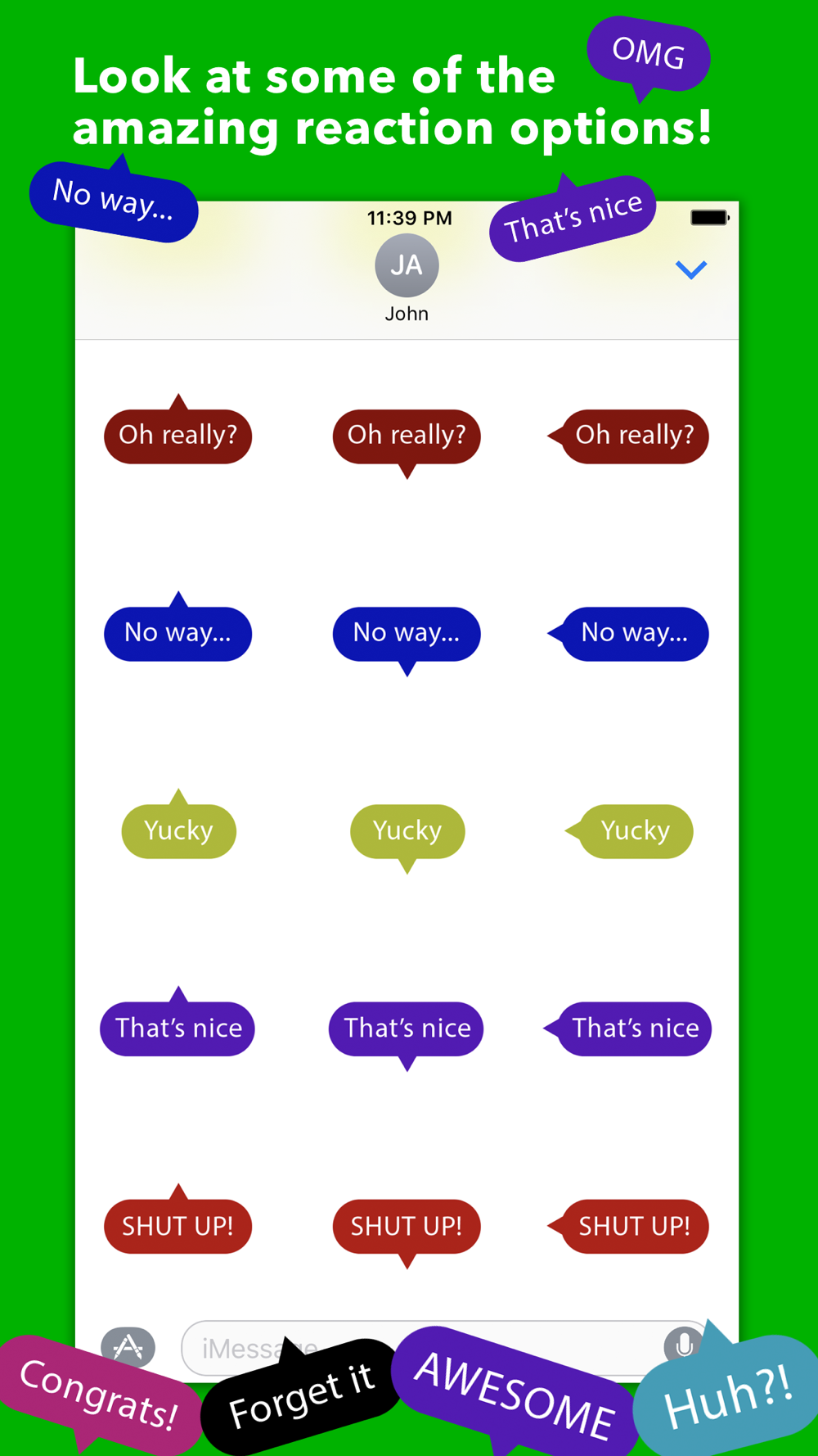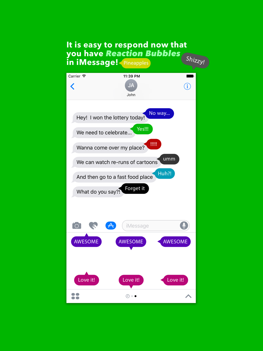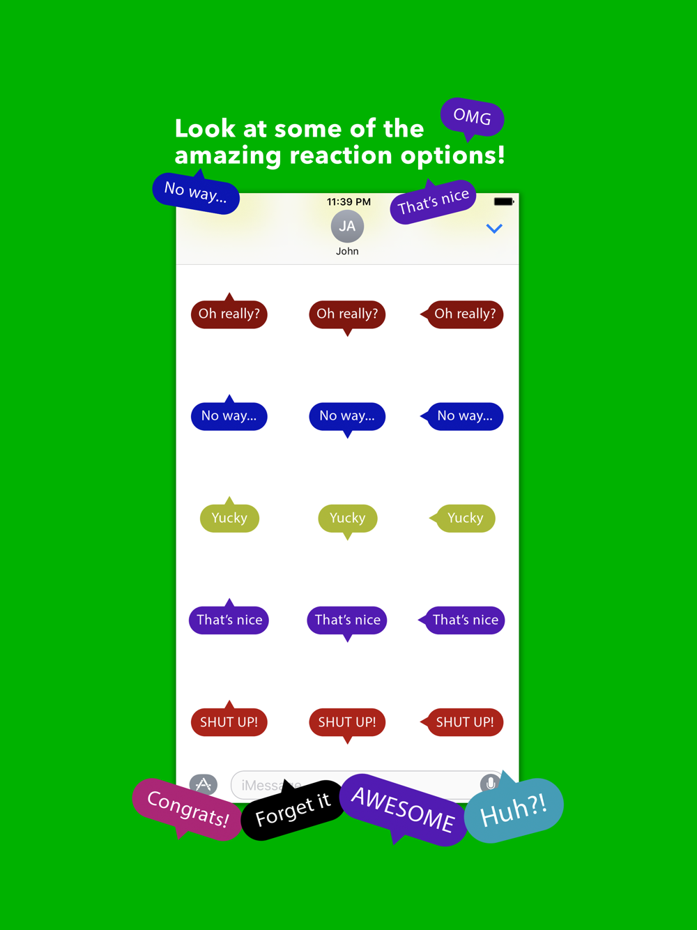 Texting can get confusing fast, especially with people bombarding you with Taco stickers, GIFs, and pictures of your brother's face really close up. Stop the confusion and try Reaction Bubbles!