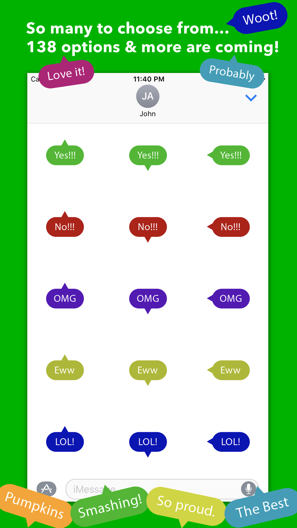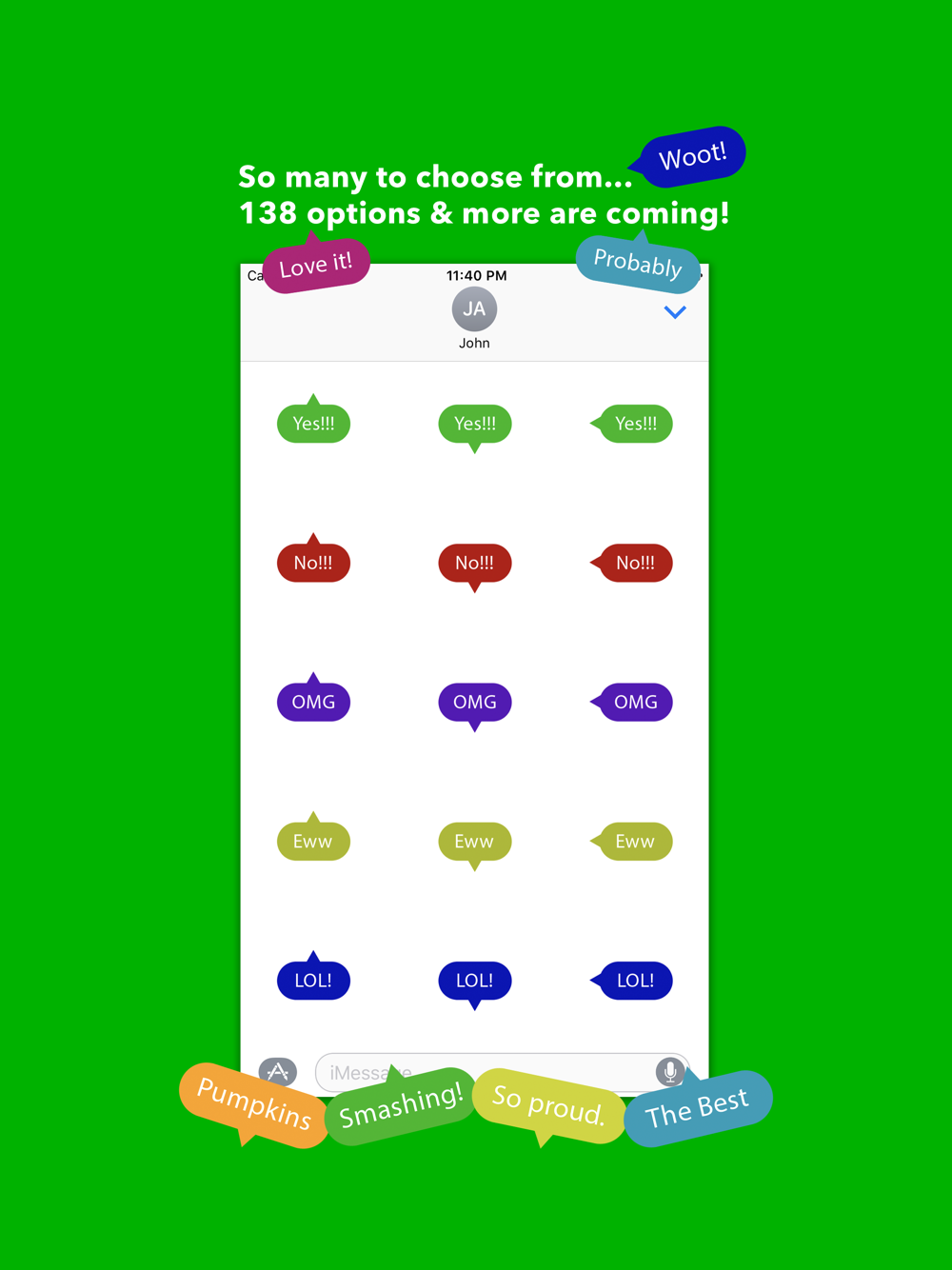 With 138 reaction stickers, you can react from all angles of your text messages. Use what works best for you!
