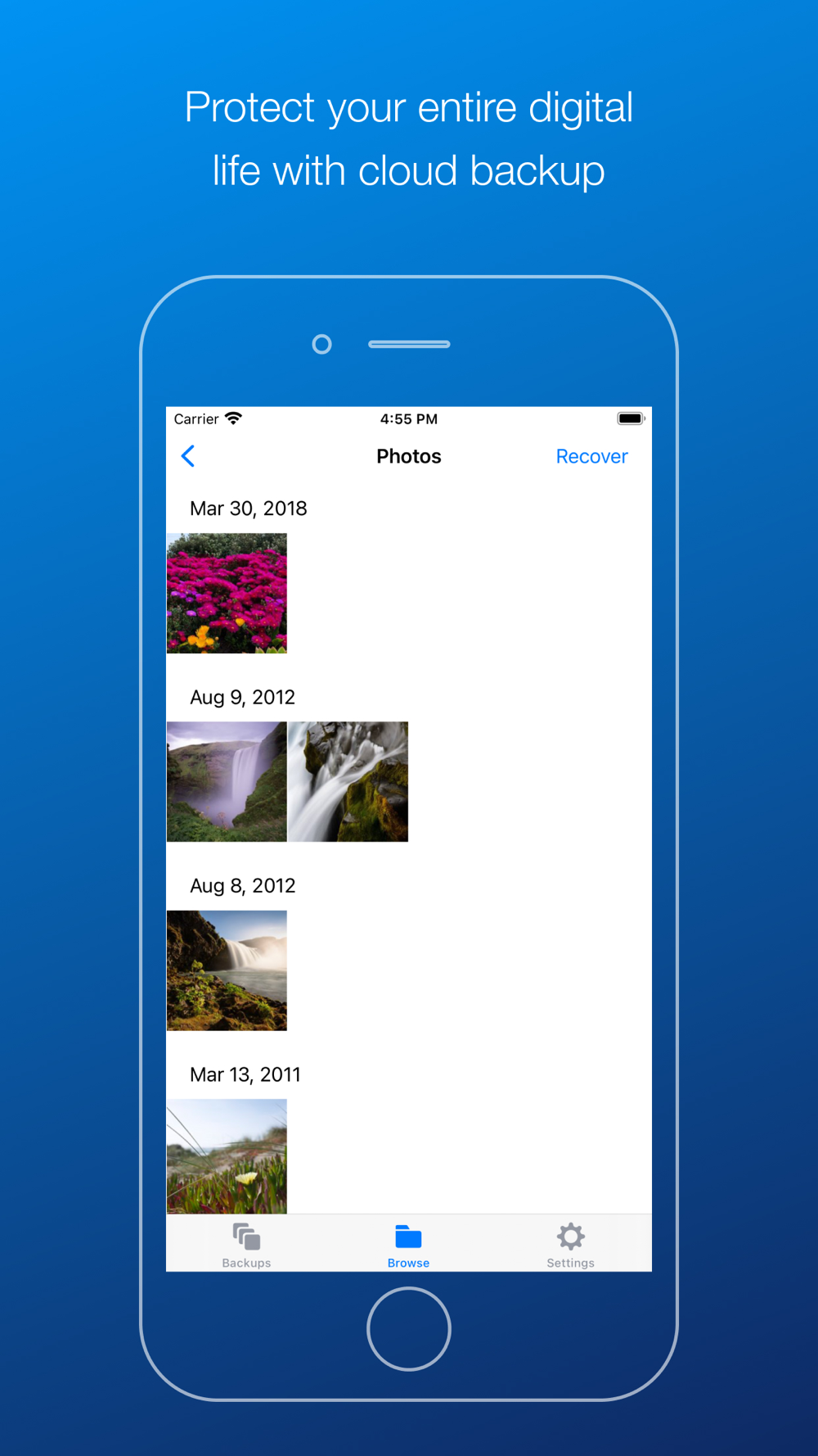 • Protect everything with mobile backup of contacts, photos, videos, and calendar from your iOS smartphones and tablets