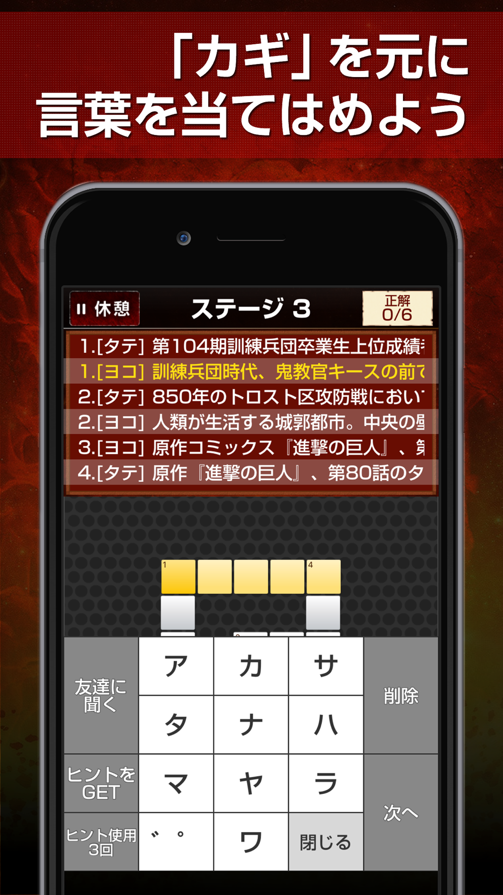 Let's fit the words on the basis of the "key" associated with the "Attack on Titan"!