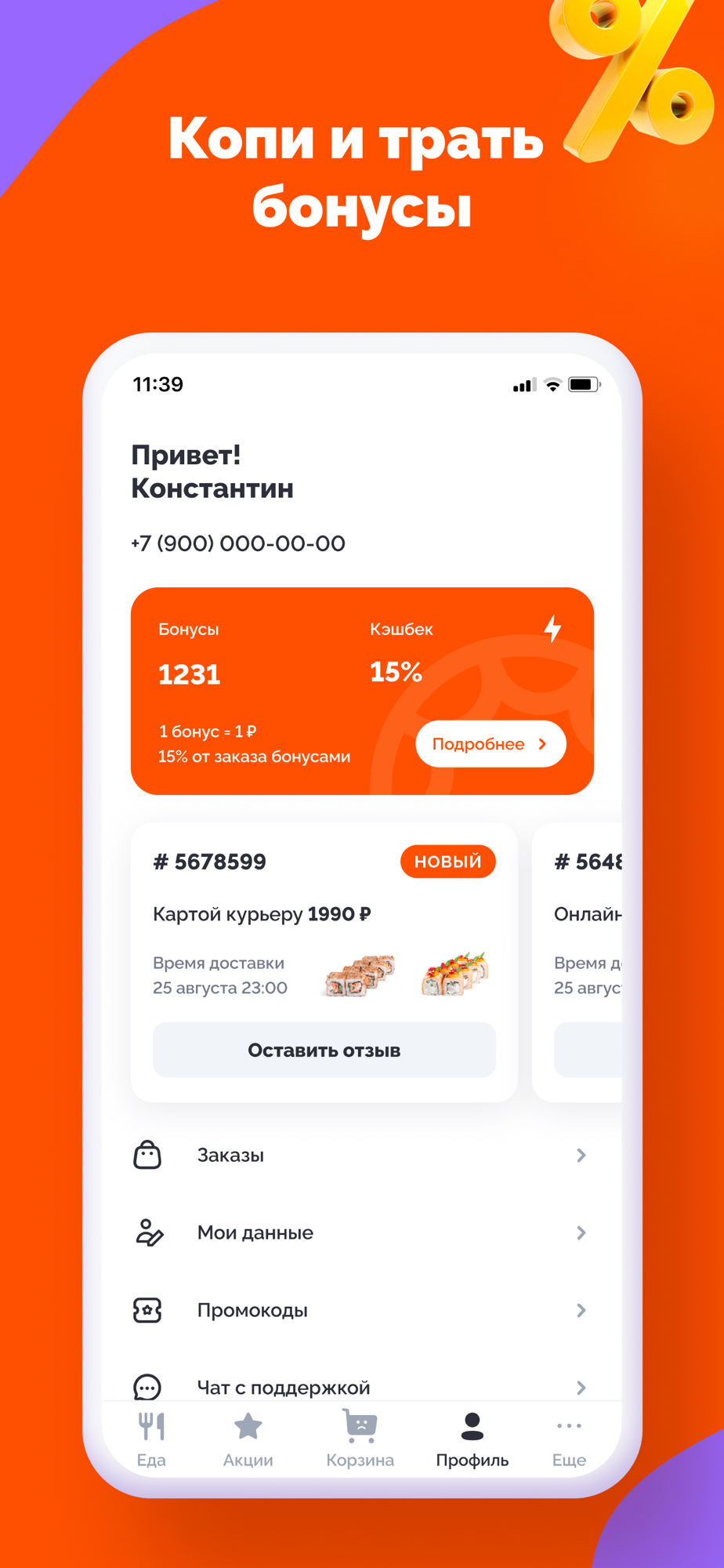 Благодаря этому все меню, акции и ваши данные всегда доступны аналогично сайту и звонку в наш федеральный Call-центр. Все акции/подарки и скидки применяются автоматически при наличии подключения к интернету!