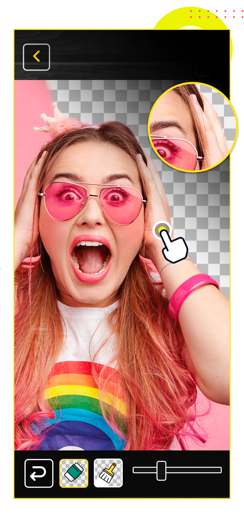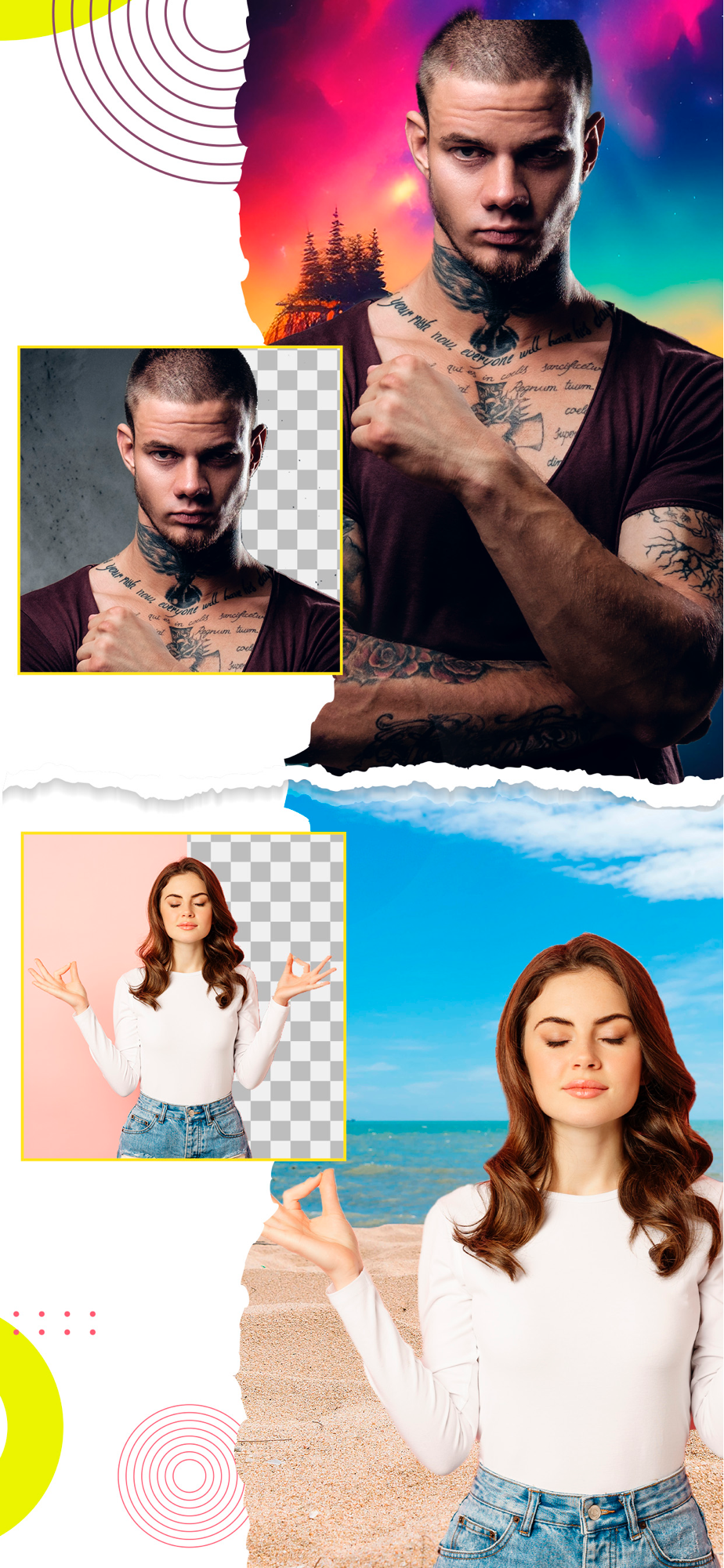 Create fun photo montages, collages or personalized custom photo stickers. Erase, change or add background image. Cut people out and put them on a new picture.