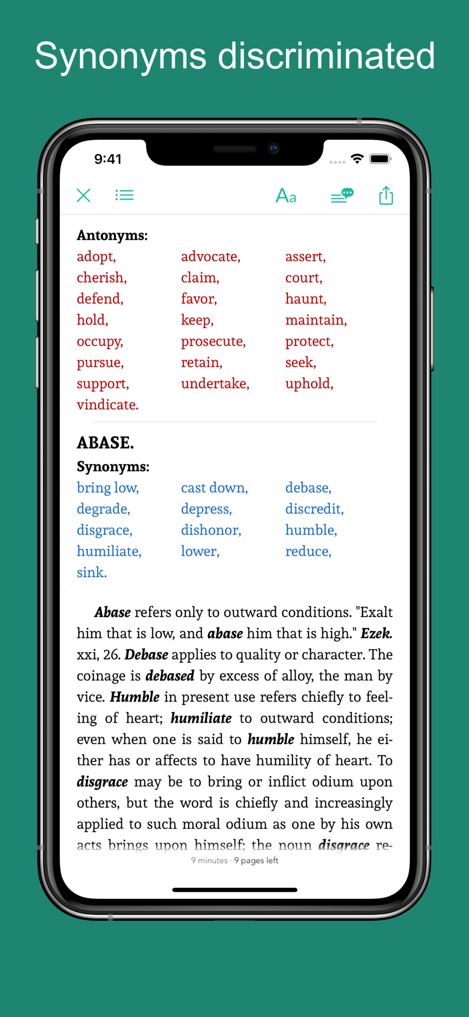 This app combines "English Synonym Antonym" with professional narration enabling advanced functions like sync transcript, read aloud (a professional narration synchronized with the highlighted text.)
