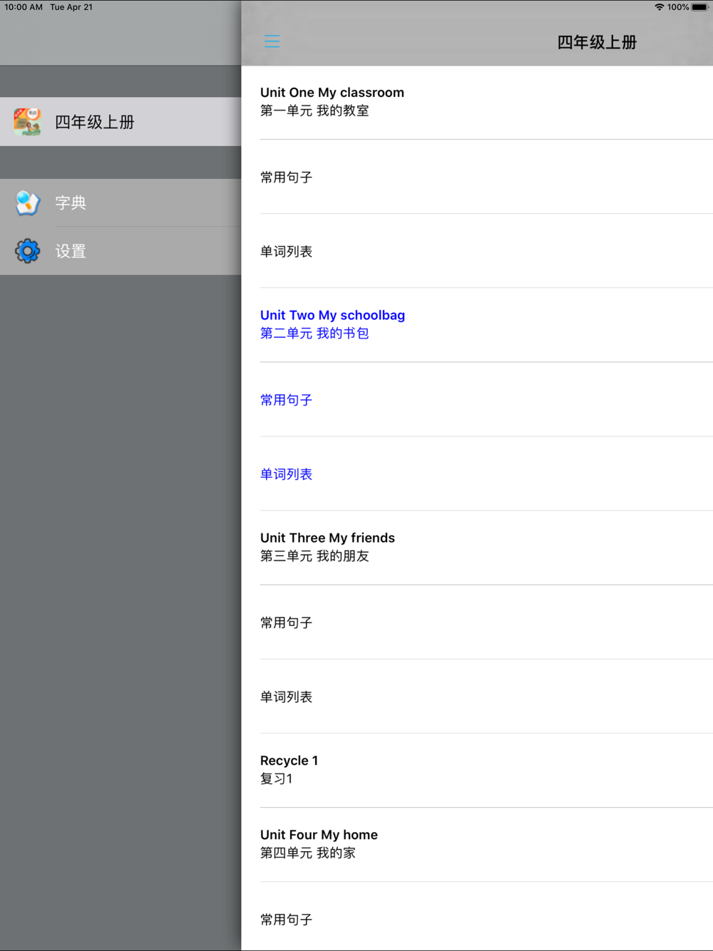 *与教材完全一致,此应用为PEP人教版小学英语四年级上册(三年级起点)完全最新版。