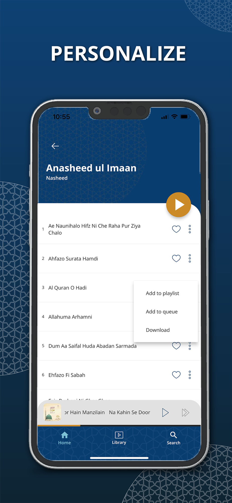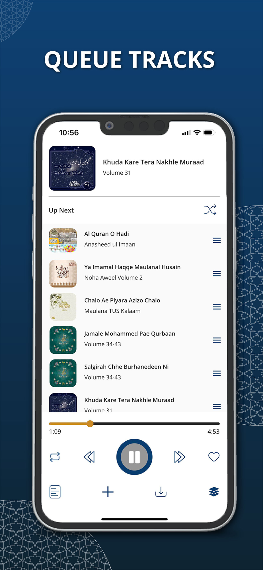 ● Create your own custom queue inside the app to listen to a series of kalaams of your choice in an