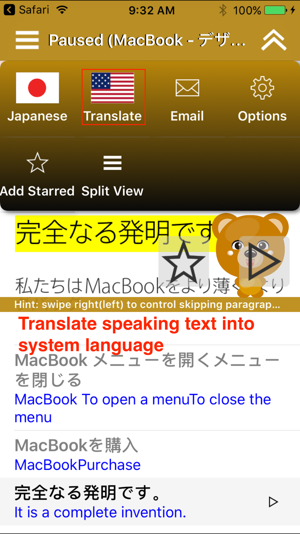 - Lock screen support: play, pause, skip a sentence, adjust playback volume and see the sentences list on the lock screen
