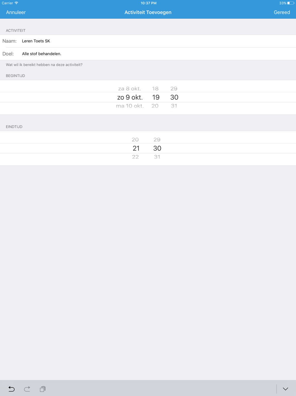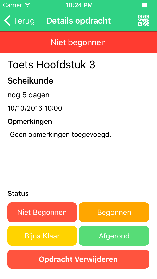 - Markeer huiswerkopdrachten als "Niet begonnen", "Begonnen", "Bijna klaar" en "Afgerond".