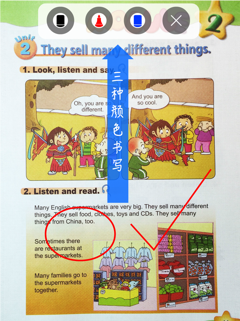 ● 电子书写笔,可以涂涂画画,小朋友可以直接在页面写写单词加强练习